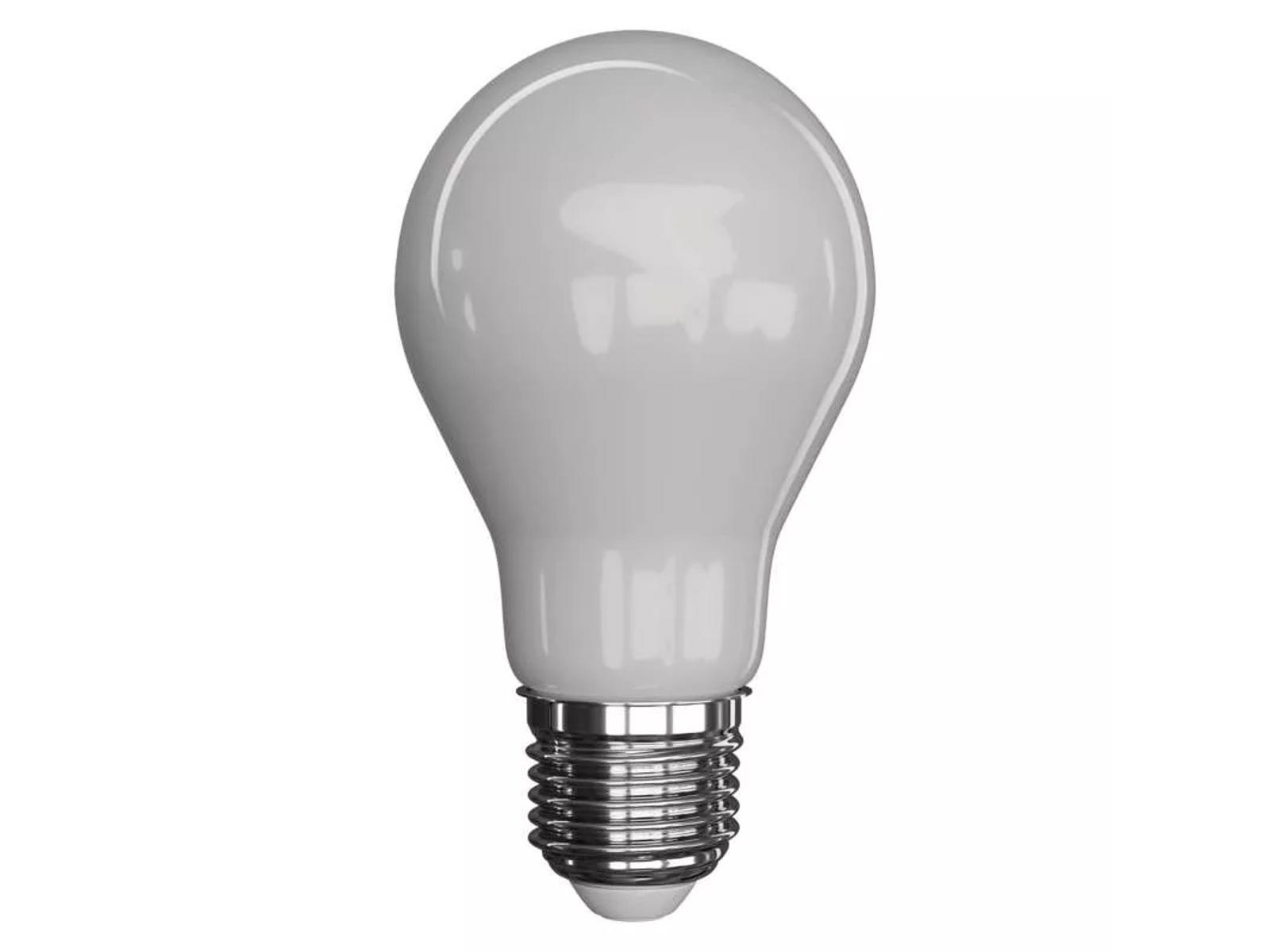 Denne EMOS E27 LED-filamentpære 7,8W (75W) i A60-design giver et varmt hvidt lys (2.700K) med en lysstyrke på 1.060 lumen. Den er ikke dæmpbar og har en lang levetid på op til 25.000 timer – ideel til generel rumbelysning og dekorative armaturer.