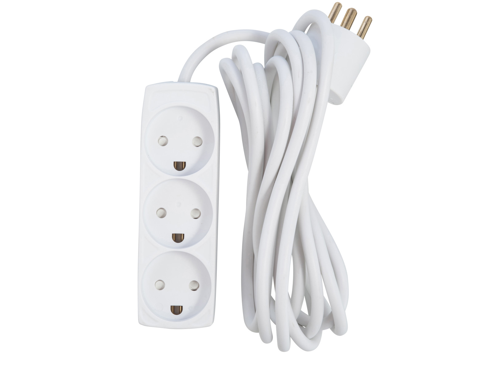 3-Stikdåse med jord, 3 meter ledning – Hvid