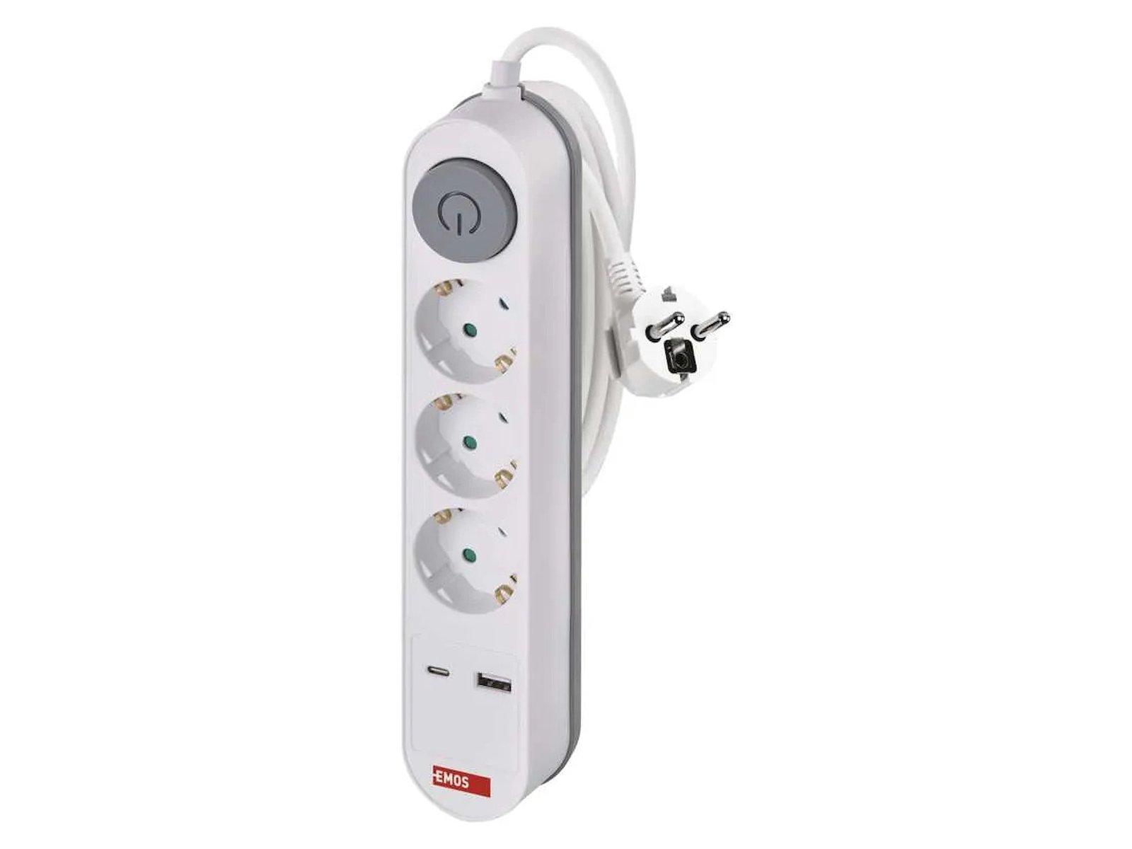 EMOS 3-Stikdåse med ledning – Schuko, USB-A & USB-C og afbryder – 1,5 meter – Hvid