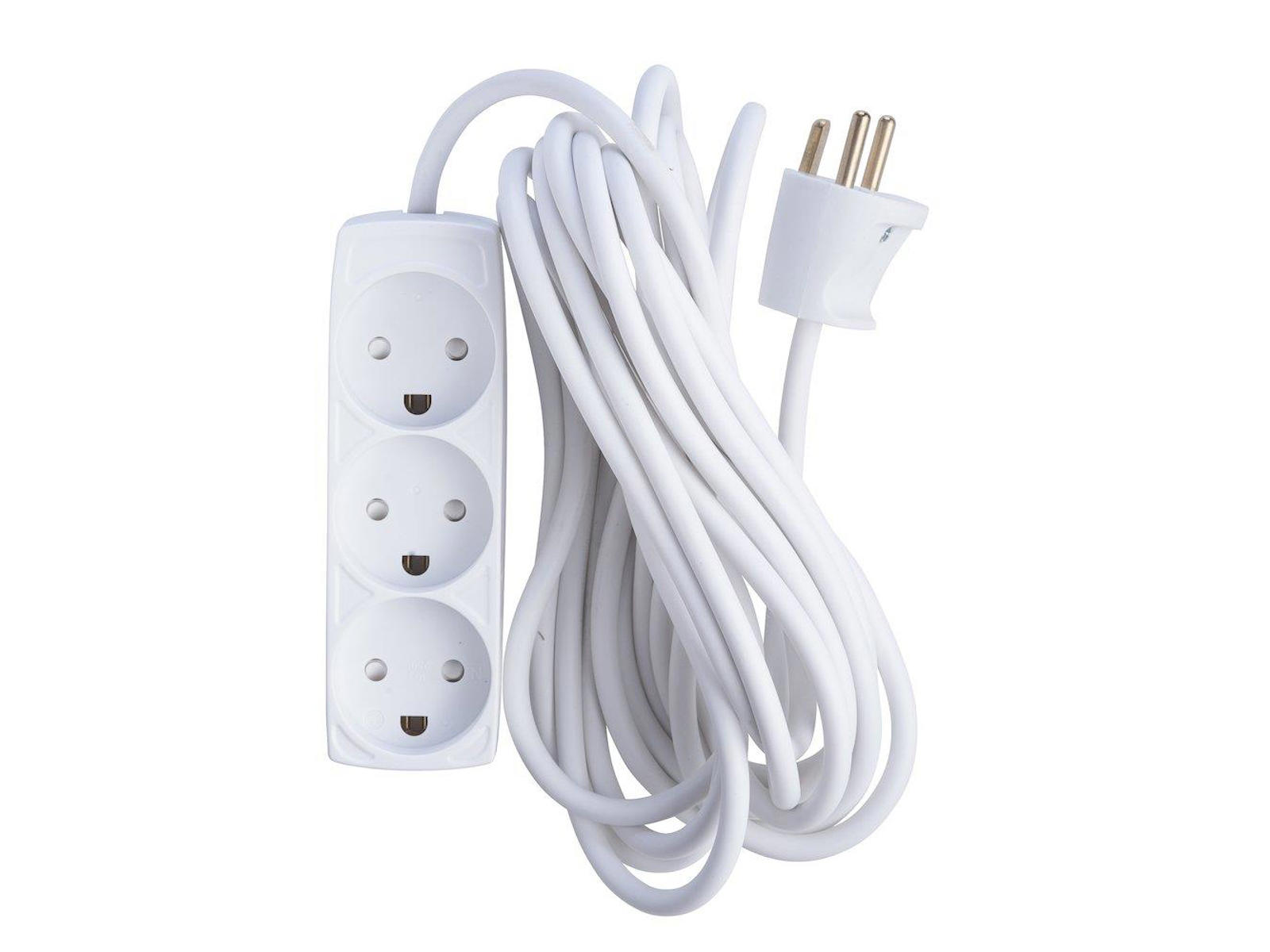 3-Stikdåse med jord, 5 meter halogenfri ledning – Hvid
