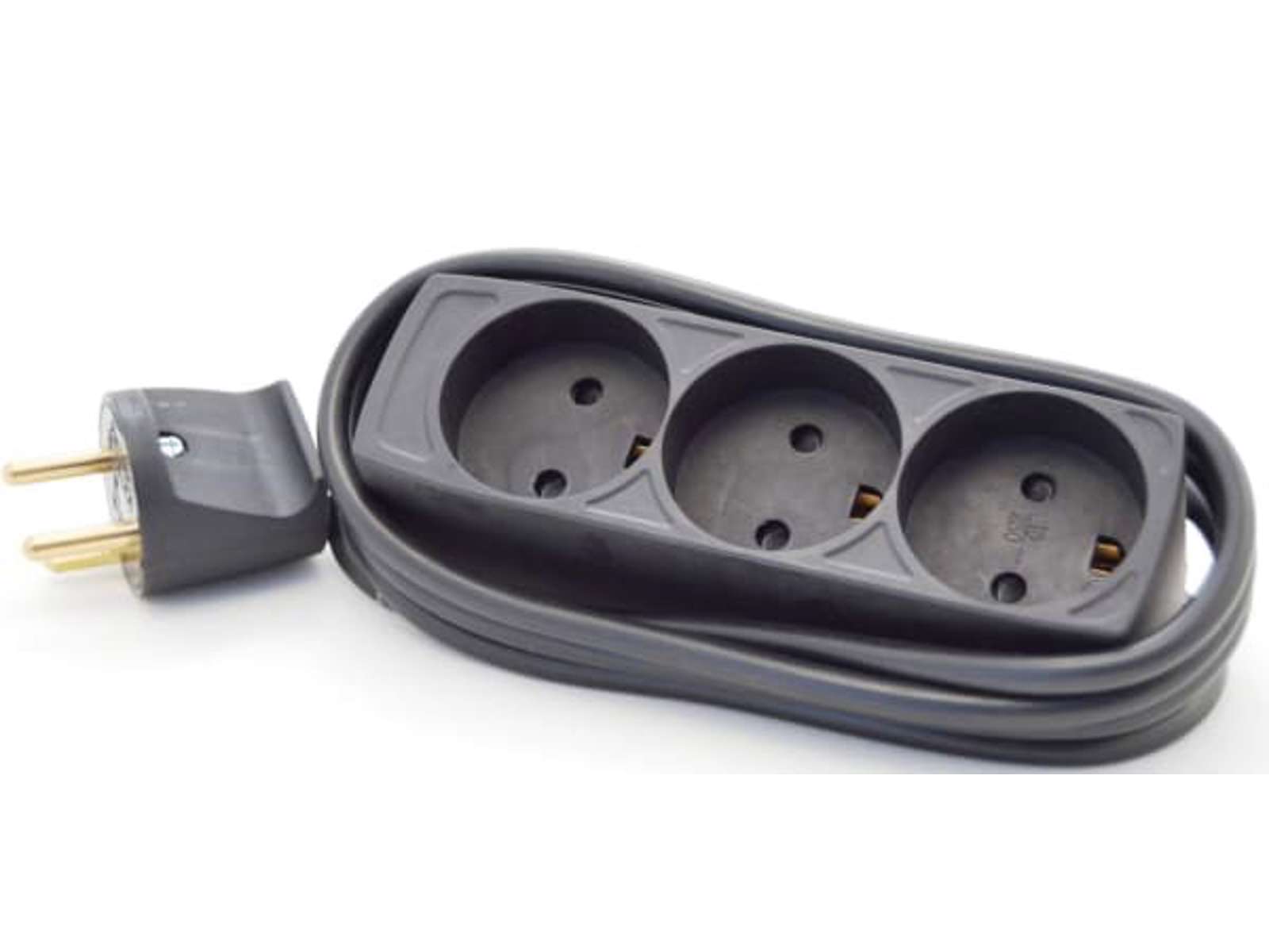 3-Stikdåse med jord, 3 meter ledning, vinklet stik – Sort