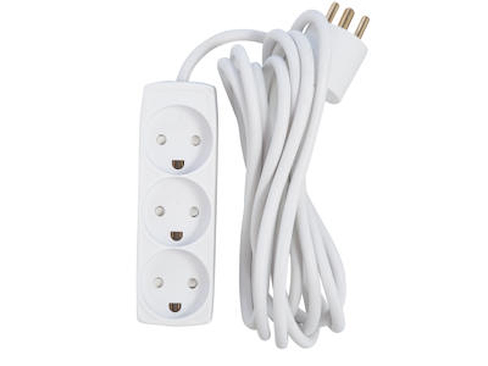 3-Stikdåse med jord, 3 meter halogenfri ledning – Hvid