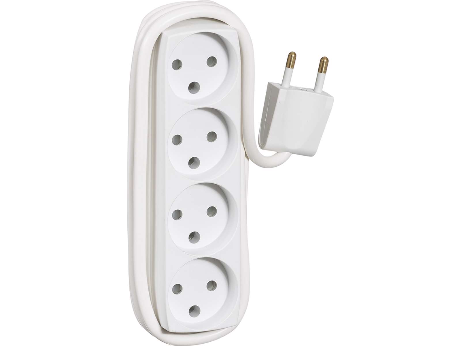 4-Stikdåse LK Hvid Uden Jord (med blindhul) Med 1,5 Meter Ledning Type 210A1231 Med Runde Stik