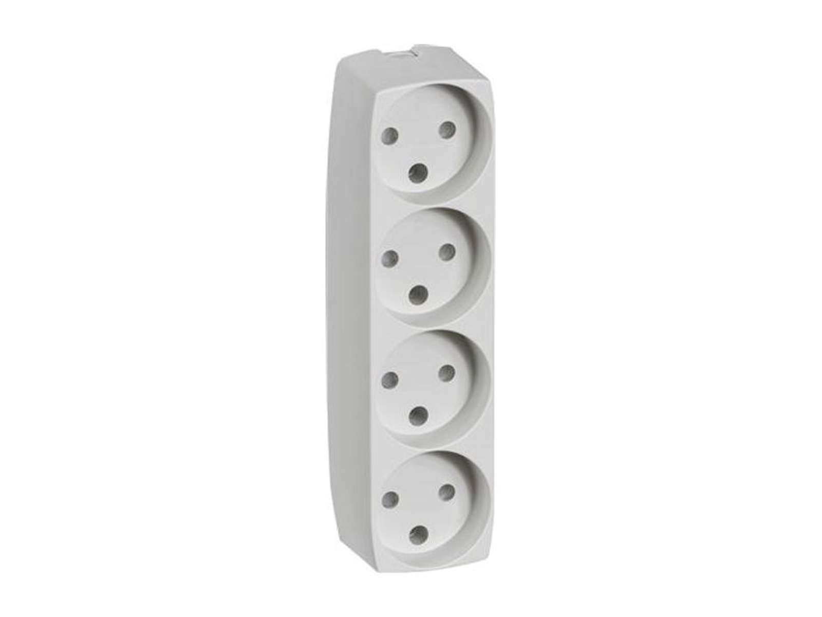 Stikdåse uden ledning med 4 udtag giver fleksibel strømfordeling med maks. belastning på 3680 W ved 16 Amp og 250 V.