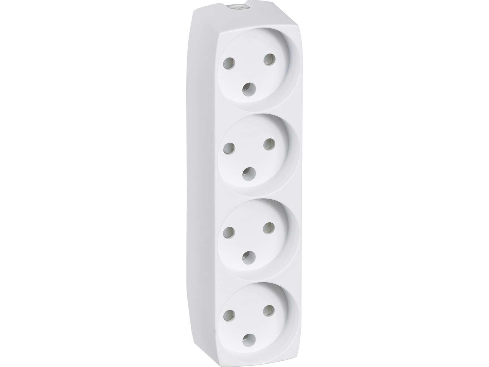 Denne 4-stikdåse uden ledning har fire udtag uden jord og er velegnet til samling af strømforsyning til flere mindre elektriske apparater i hjemmet, på kontoret eller i værkstedet. Den er klar til montering med plastledning og giver en enkel og fleksibel installationsløsning.