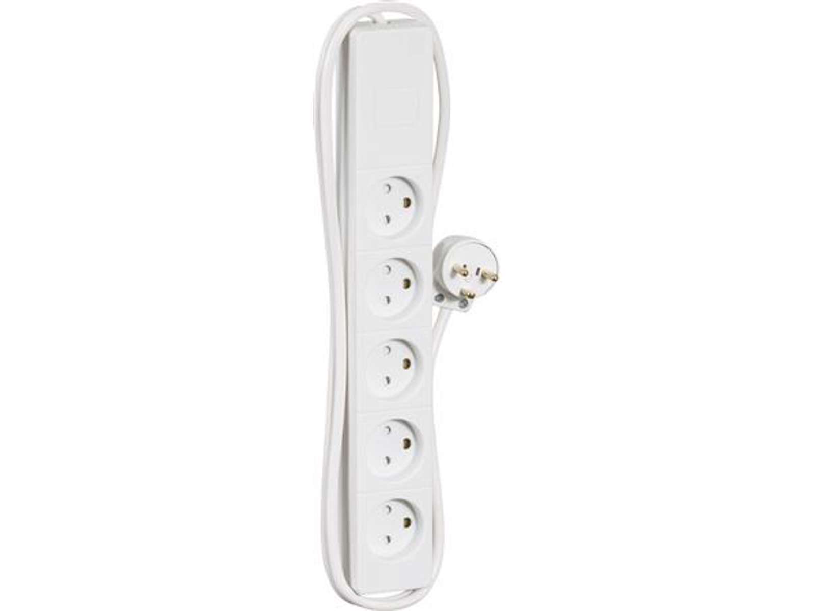 5-Stikdåse med jord, 1,5 meter ledning og ophængshuller – Hvid