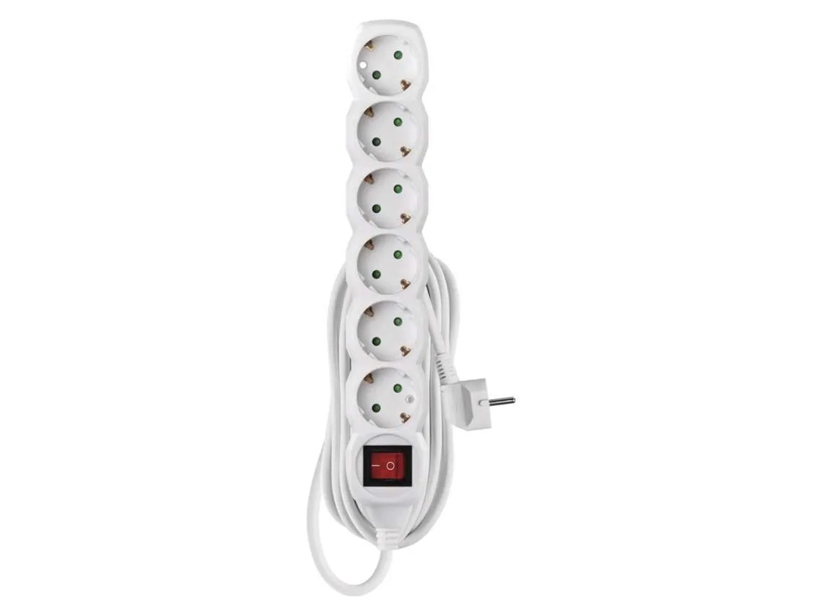 EMOS 6-Stikdåse med Schuko og afbryder – 5 meter ledning – Hvid