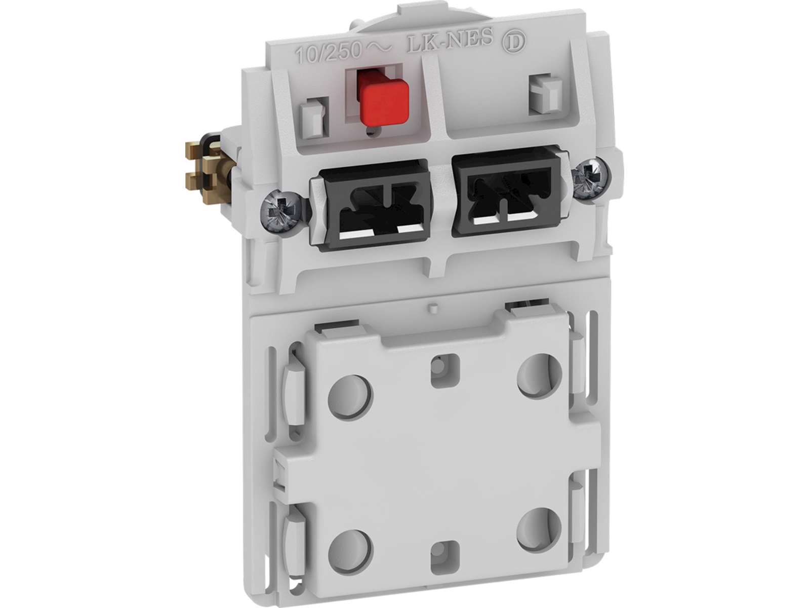 FUGA dobbelt stikkontakt uden jord og uden afdækning er designet til faste boliginstallationer, hvor der ønskes en elegant og modulopbygget løsning. Denne variant er ideel, når der anvendes specialrammer eller eksisterende afdækninger i FUGA-systemet.