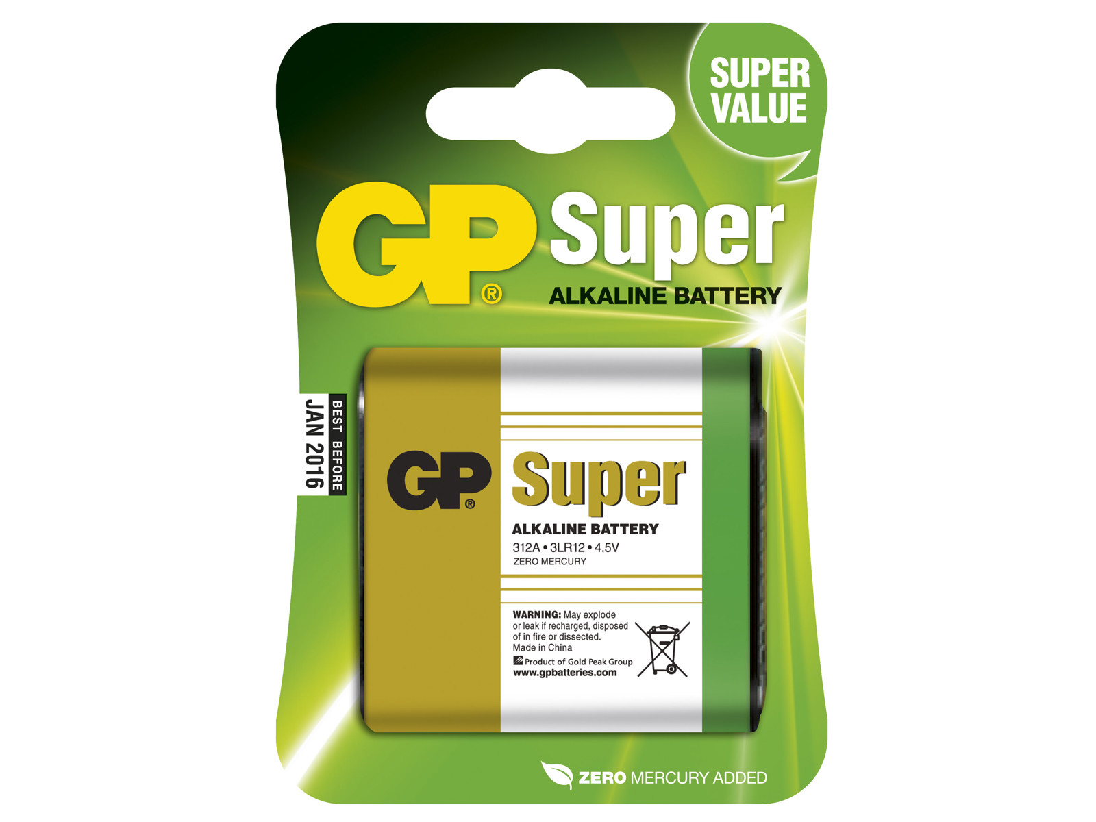 GP Super Alkaline 4,5V batteri – 312A/3LR12 (1-pak)