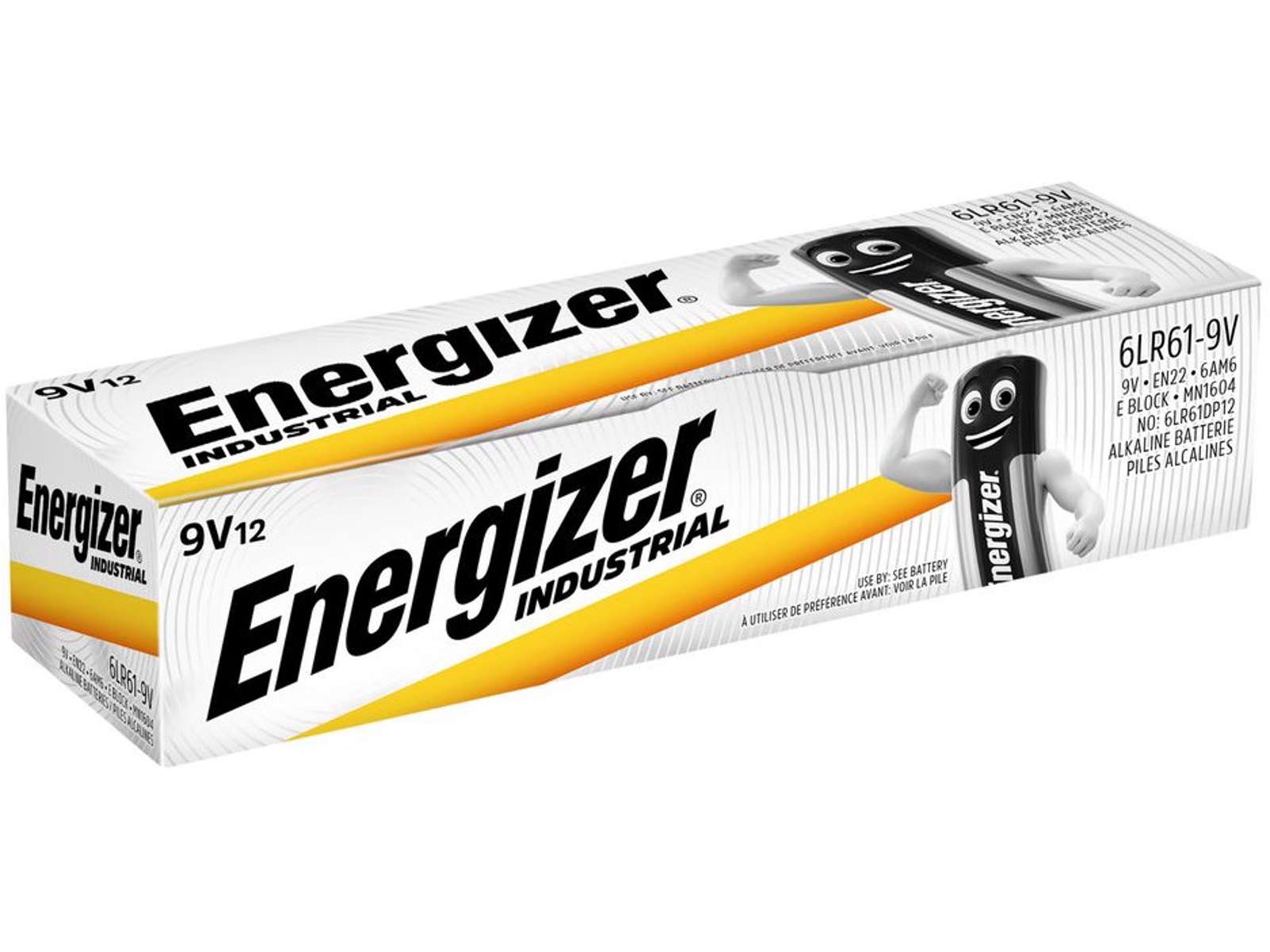 522 6lr61 Energizer Industrial Alkaline 9V 26,5 x 17,5x48,5 12 Stk. Pakning.