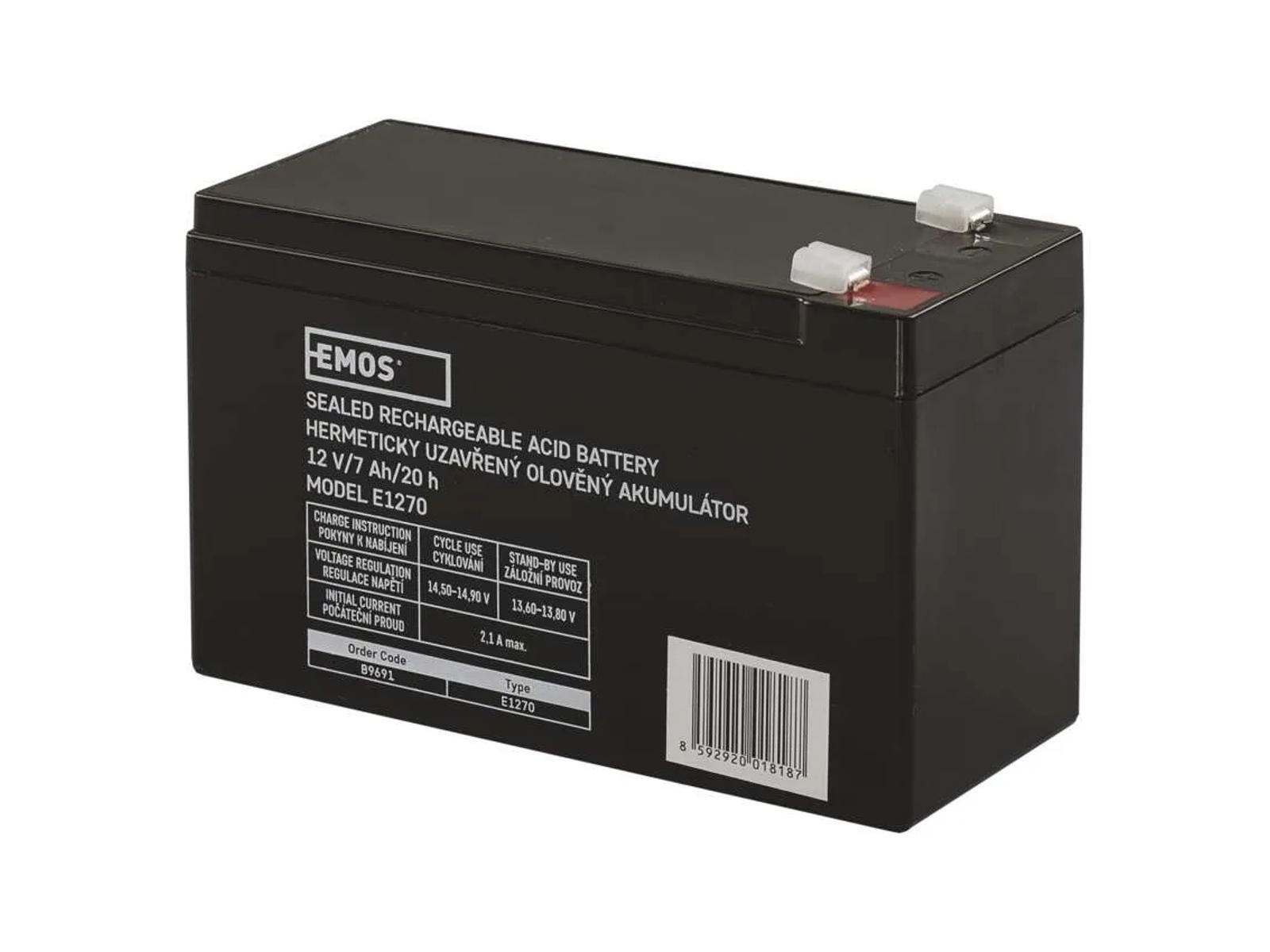 Dette EMOS AGM blybatteri på 12 V og 7 Ah er et vedligeholdelsesfrit SLA-batteri (VRLA) udviklet til driftssikker strømforsyning i UPS-anlæg, tyverialarmer, brandalarmsystemer, elevator-backup og andre elektroniske sikkerhedssystemer.