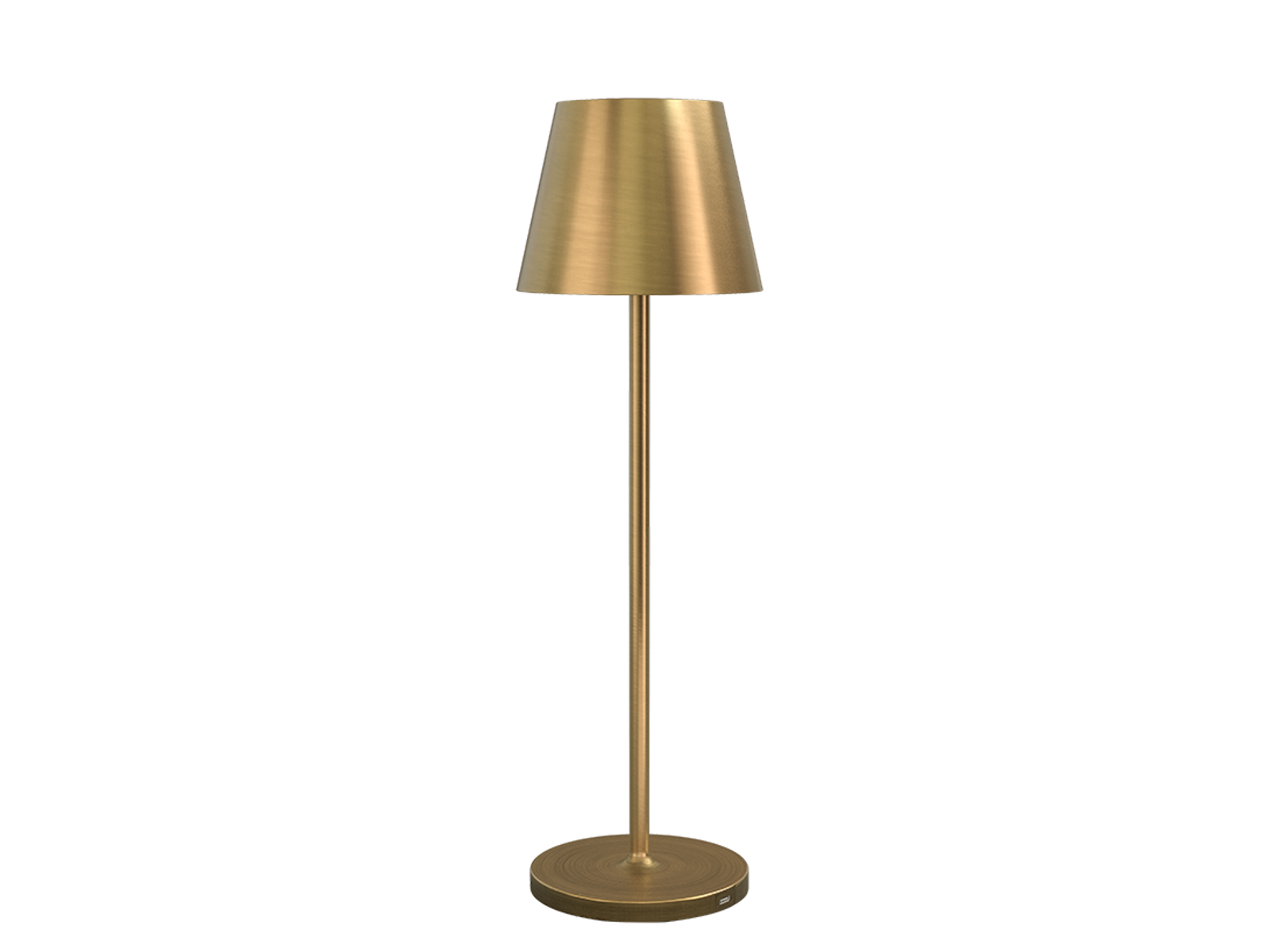 Den messingfarvede finish tilfører et eksklusivt udtryk, mens den trådløse funktion giver maksimal fleksibilitet i indretningen – helt uden synlige kabler. Lampen betjenes nemt via touch-knap med trinvis dæmpning, så stemningen kan justeres efter behov.