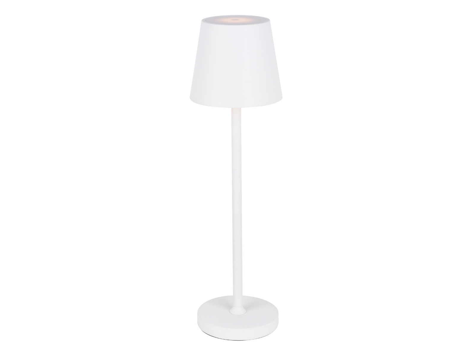 Denne genopladelige LED bordlampe i hvid (RAL9010) er skabt til fleksibel brug både udendørs og indendørs takket være den høje IP-klassificering, som beskytter mod fugt og snavs. Lampen er udført i et solidt aluminiumshus med akryl diffuser, der sikrer et blødt og behageligt lys uden blænding.