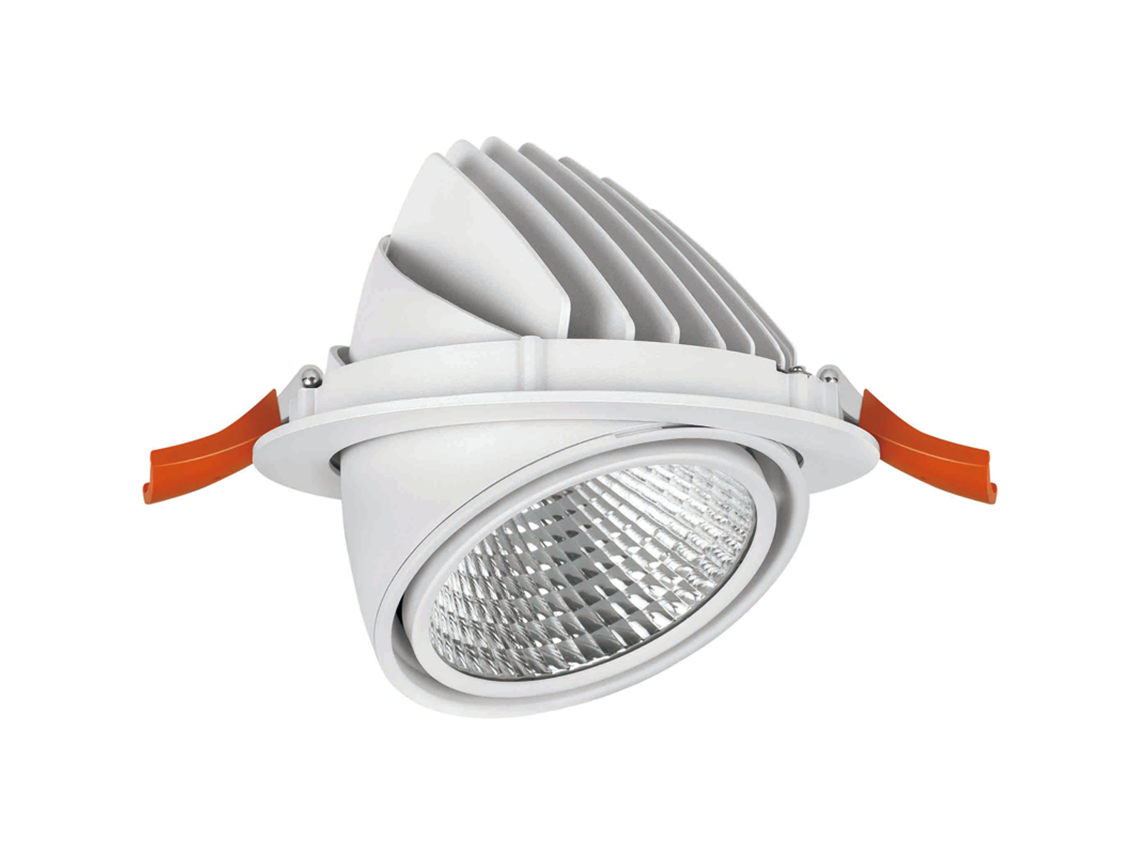 Kipbar downlight med højt lumen output (4500lm) og RA-værdi (90). Har hulmål Ø175mm og diameter Ø187mm. IP20.