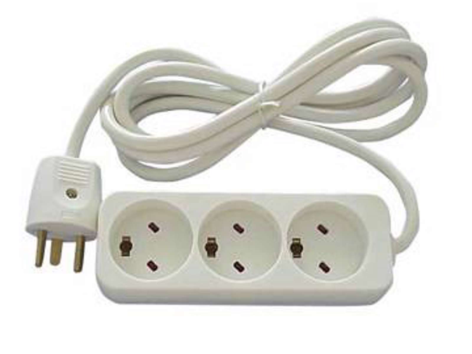 3-Stikdåse m. jord, 5 m ledning – Hvid – EDB