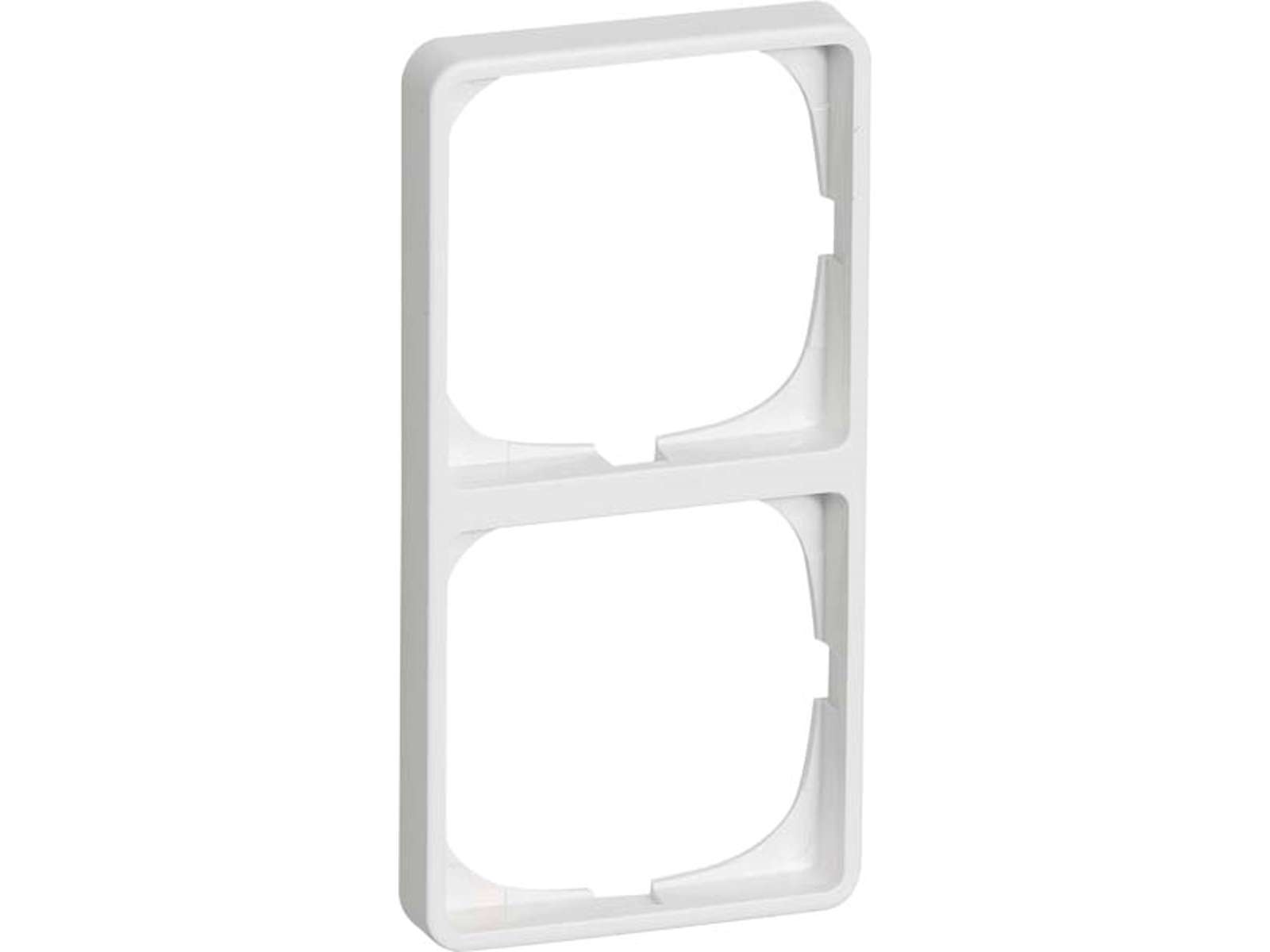 FUGA Baseline 50 ramme i hvid er designet til lodret montering af to 1-modul FUGA-indsatse, fx afbrydere eller stikkontakter placeret over hinanden.