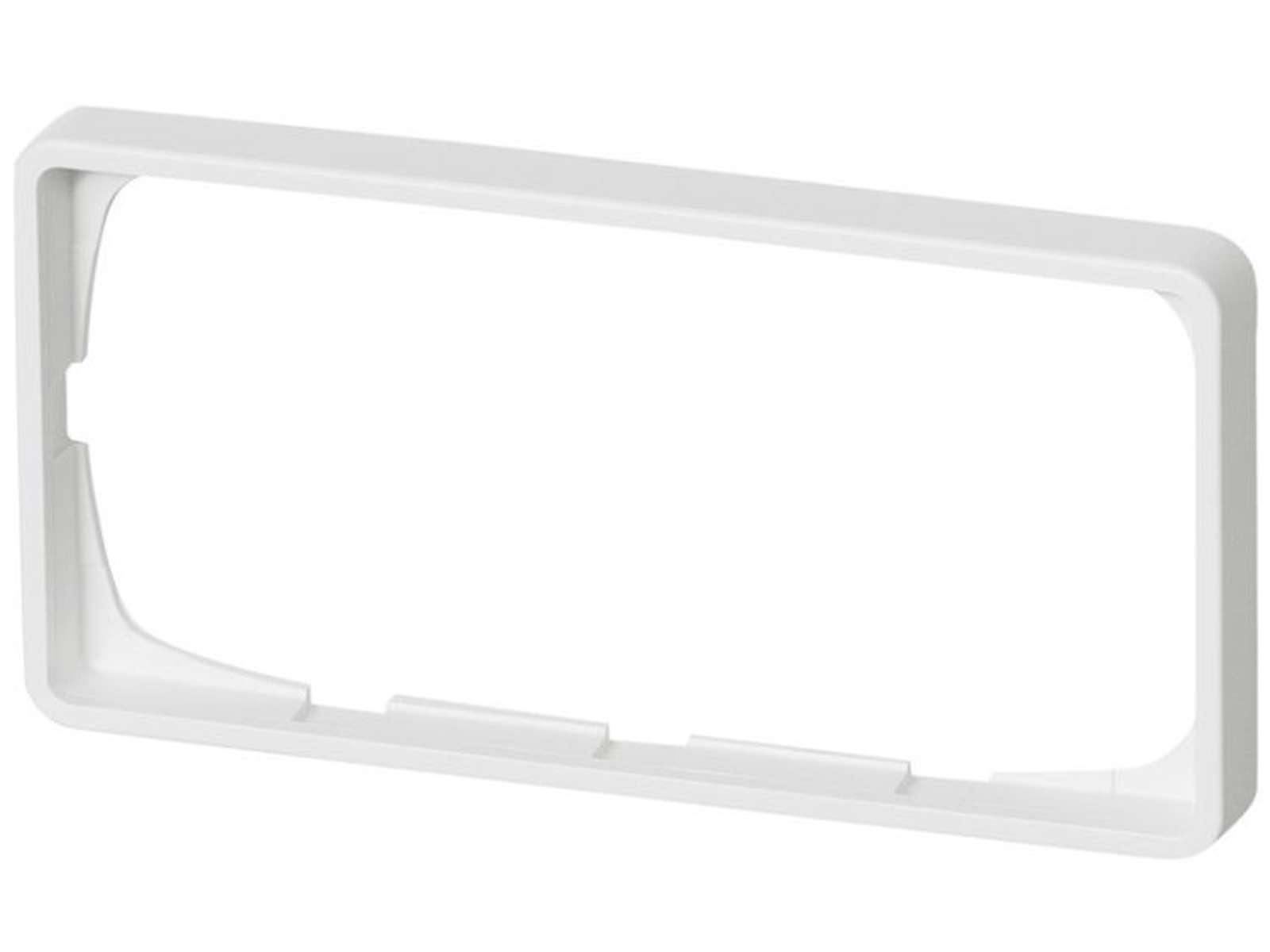 FUGA Baseline 50 ramme i hvid er designet til vandret montering af to 1-modul FUGA-indsatse, fx to afbrydere eller stikkontakter side om side.