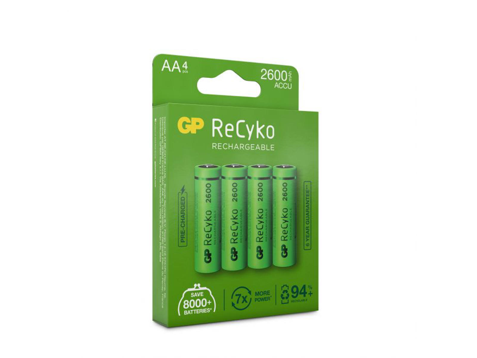 GP ReCyko AA-batterier er miljøvenlige NiMH-batterier med en kapacitet på 2600 mAh, hvilket giver stabil og langvarig strøm til dine enheder. De er forladet og klar til brug og bevarer op til 80% af opladningen efter 12 måneder takket være en lav selvafladningsrate. Med op til 300 opladningscyklusser sikrer de lang levetid og økonomiske besparelser.