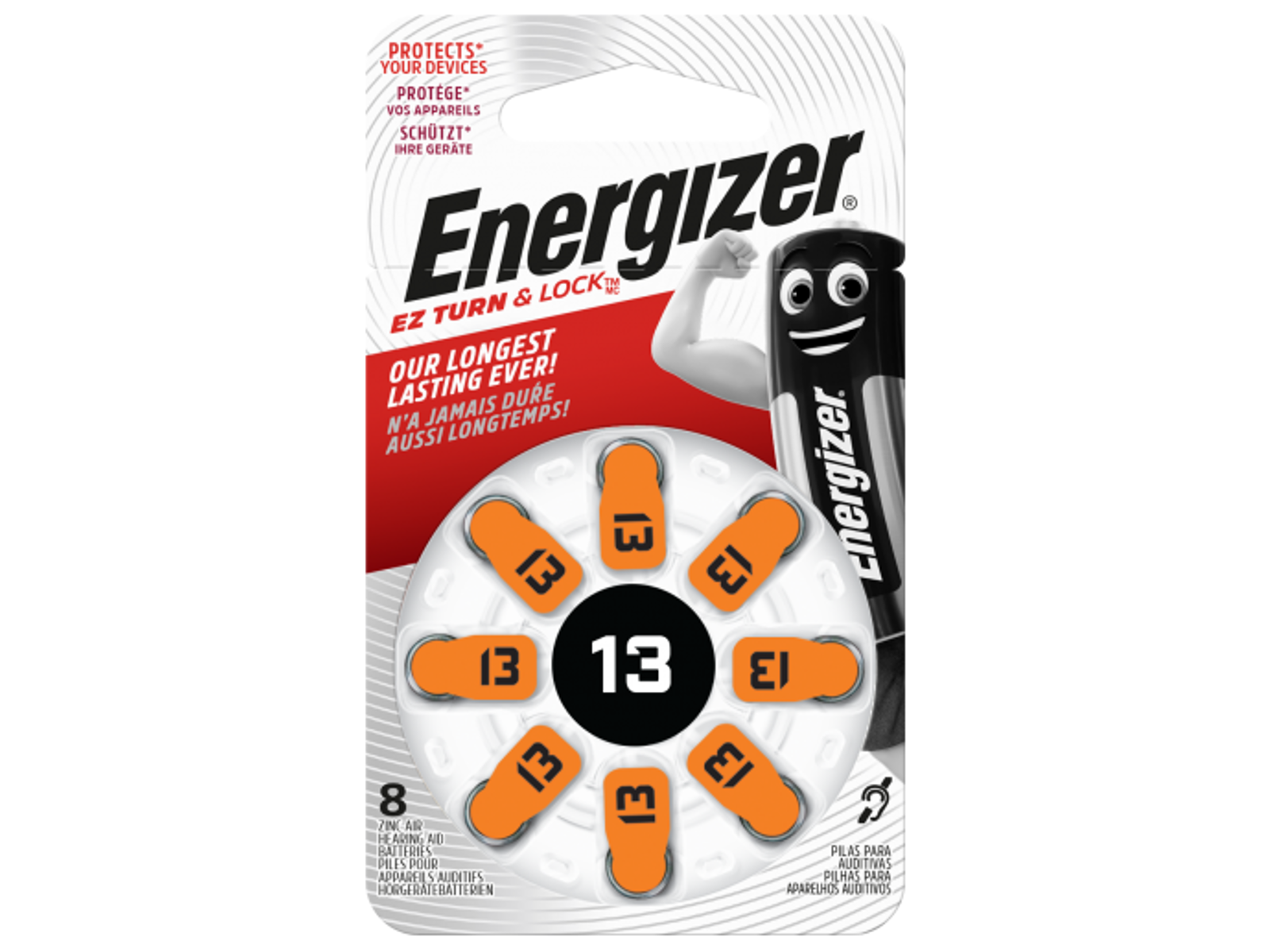 Energizer Hearing Aid 13 er et zinc-air høreapparatsbatteri, konstrueret til at levere høj kapacitet, stabil spænding og pålidelig drift i moderne høreapparater – også modeller med Bluetooth og trådløs kommunikation.