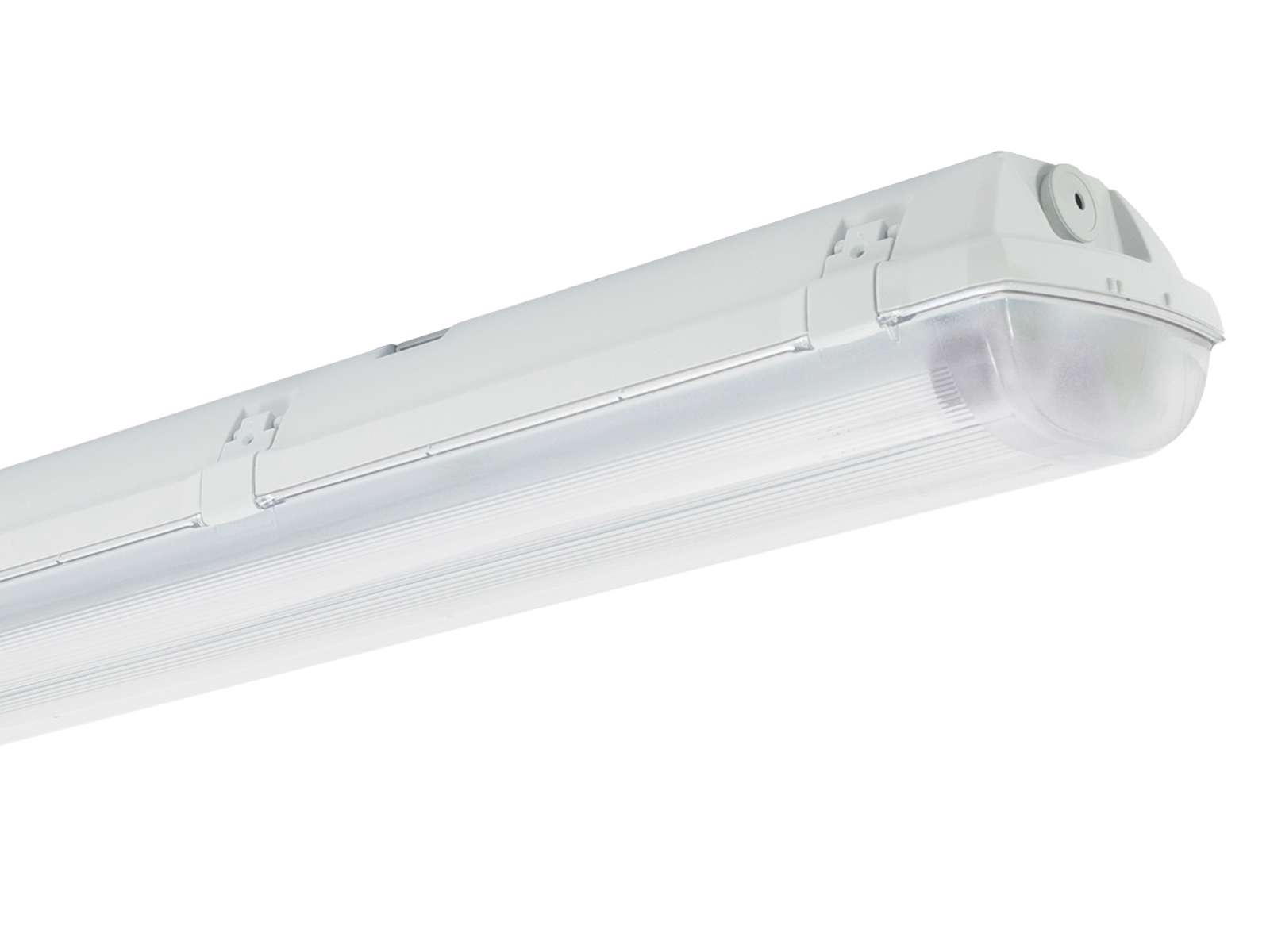 Industrl armatur i plast med høj kemisk resistens, med diffusor lavet af transparent acrylat og til T8 LED rør.