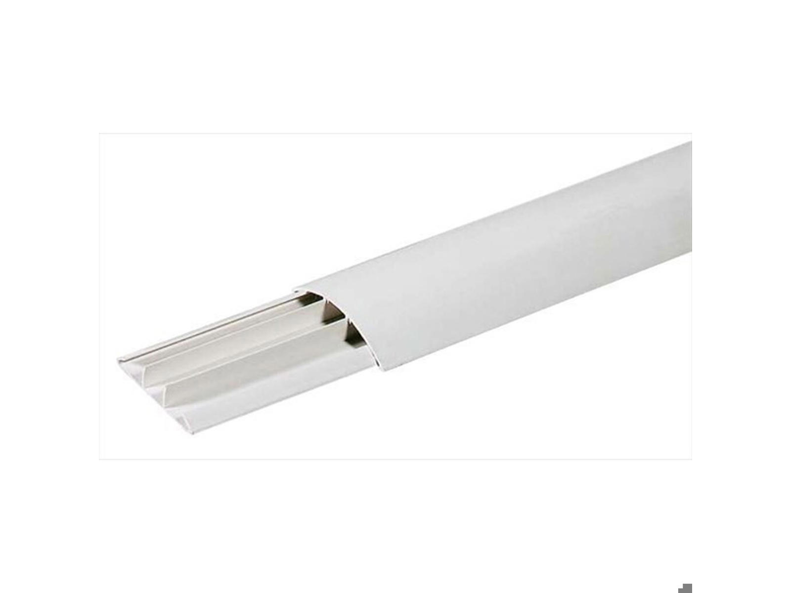 Denne gulvkanal er designet til at beskytte og skjule kabler, der ligger frit på gulvet, hvilket minimerer risikoen for snubleulykker og beskadigede ledninger.