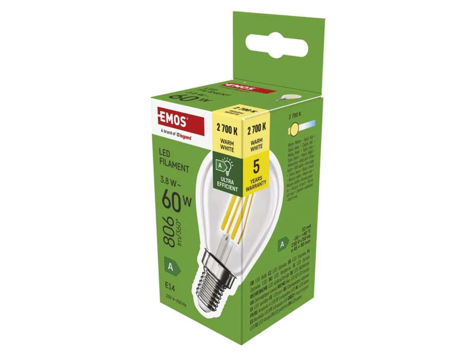 ✔ Farvetemperatur: 2.700K (varm hvid)