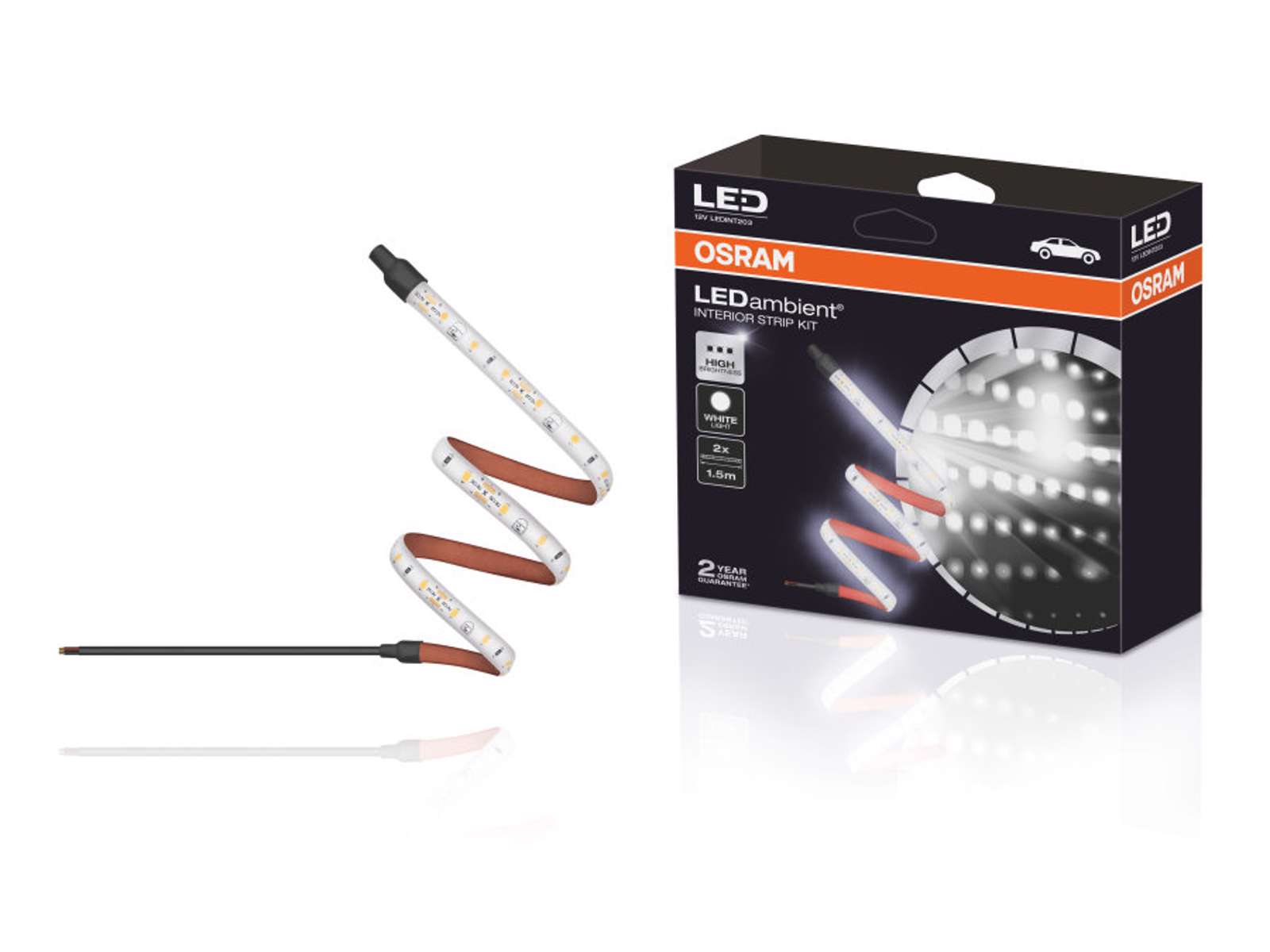 Osram LED LIGHT KIT TRANSPORTER 12V 12W er selvklæbende LED-bånd til varevogne (2x1,5 m, 900 lm pr. 1,5 m). Lavt strømforbrug, nem montering og lang levetid på op til 15.000 timer.