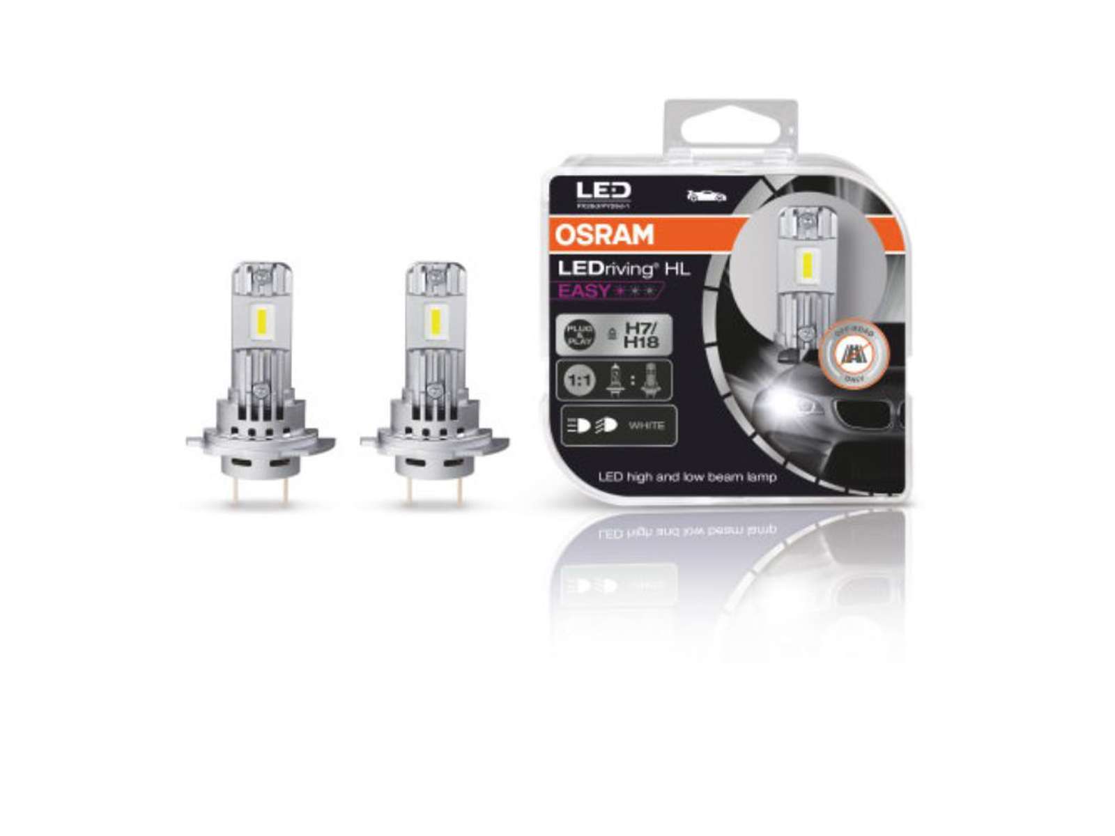 OSRAM LEDriving HL EASY H7/H18 er en kompakt og effektiv LED-erstatning for traditionelle H7/H18-pærer – udviklet specifikt til Off-Road brug. Med en farvetemperatur på 6500K køligt hvidt lys, avanceret varmehåndtering og en installation helt uden adaptere, får du en moderne og kraftfuld LED-opgradering, der er nem at montere i et bredt udvalg af køretøjer.
