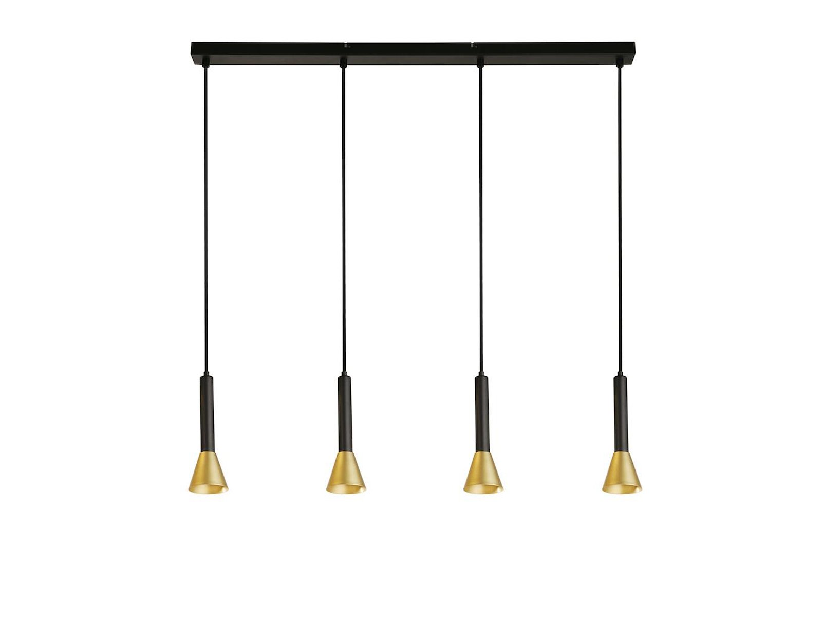 Signal 4 pendellampen kombinerer stil og funktionalitet med sin sorte og gyldne metalramme og kegleformede skærme i en pulverlakeret satinfinish. Denne pendel skaber et elegant udtryk og har en justerbar højde, hvilket gør den ideel til forskellige rumstørrelser og loftshøjder. Den målrettede belysning sikrer effektiv lysfordeling, samtidig med at den minimerer blænding – perfekt til køkkenøer, spiseborde eller moderne opholdsrum.