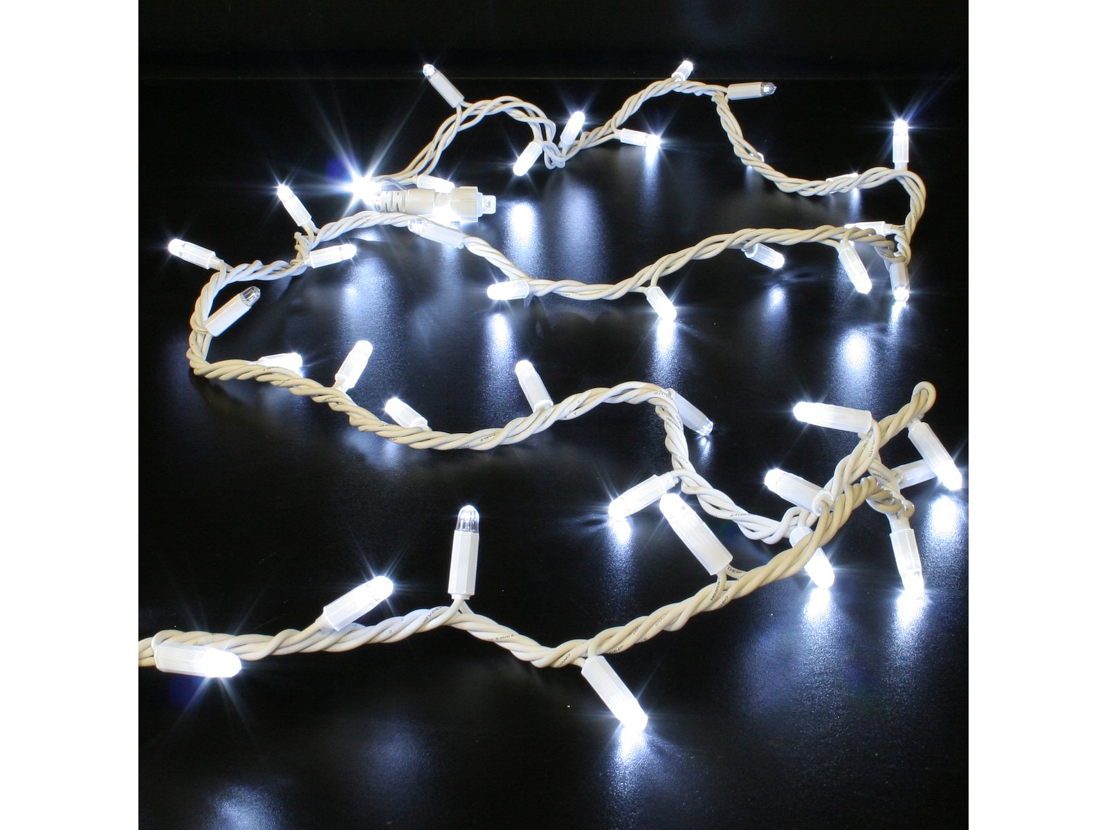 Det hvide kabel giver et stilrent og diskret udtryk, som blander sig let med lyse overflader, mens det kolde hvide lys giver et klart og elegant look, perfekt til moderne vinter- og juleudsmykning. Med IP66-beskyttelse er lyskæden robust og kan tåle regn, sne og vind, hvilket gør den perfekt til krævende udendørs forhold.