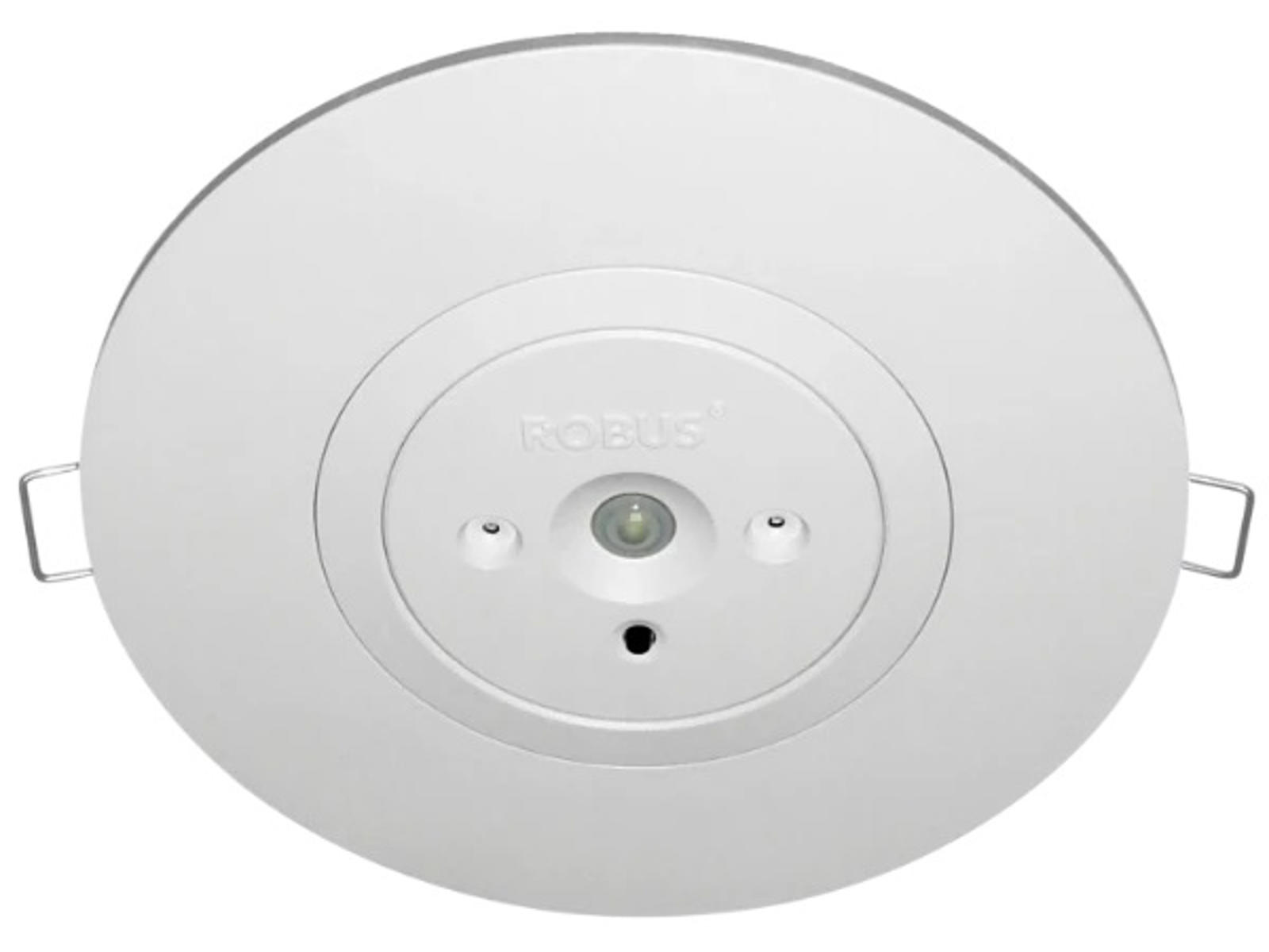 Robus CARINA 2W nød-downlight 200 lm – LED nødarmatur med DUAL TEST og linser til åbne områder og korridorer