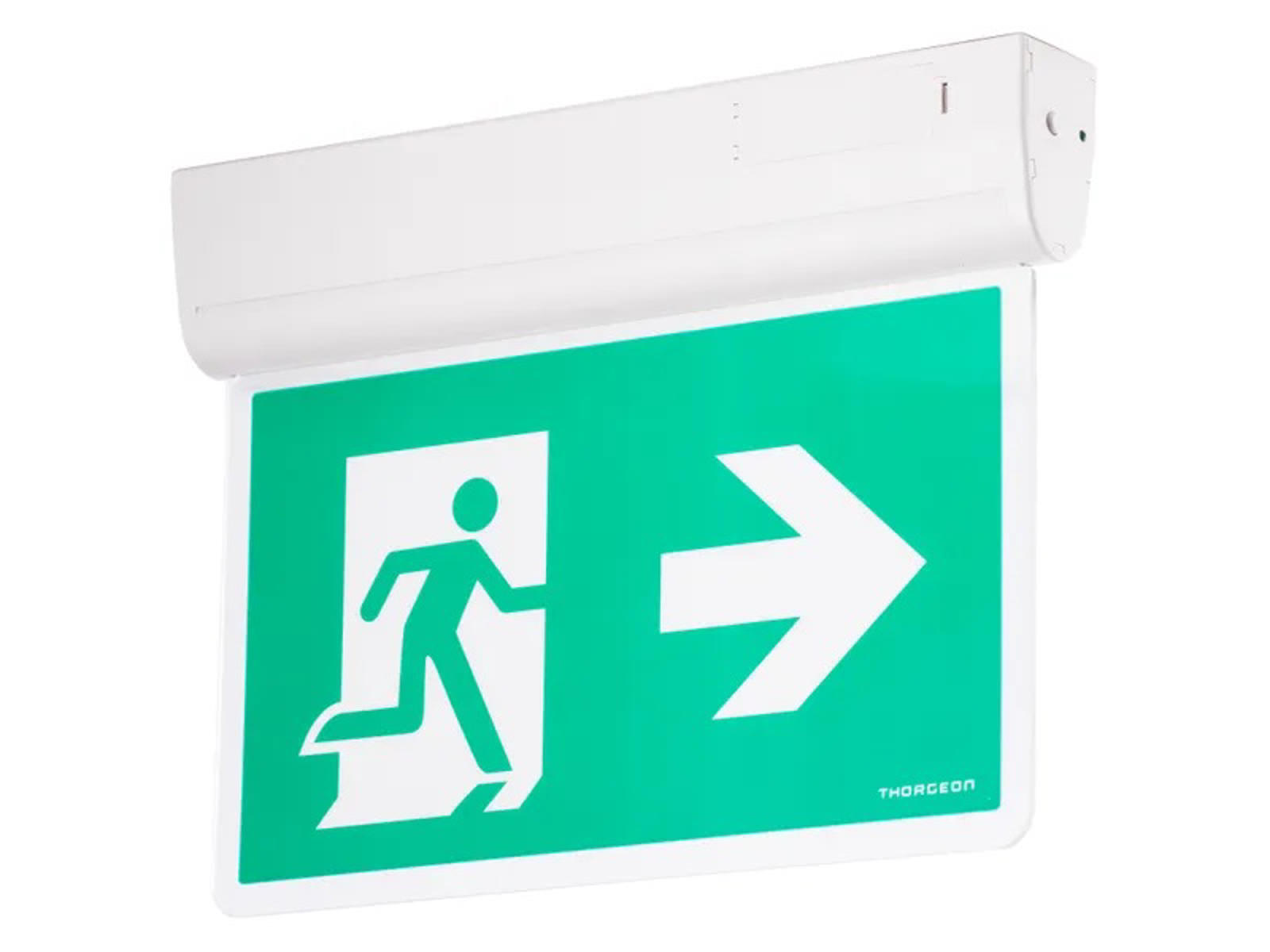 THORGEON Emergency LED 3W 3h IP40 IK05 er et effektivt og pladsbesparende nød- og flugtvejsskilt, udviklet til tydelig flugtvejssignalisering i indendørs områder som kontorer, gange, trappeopgange, teknikrum og fællesarealer. Armaturet leveres med piktogram, har integreret testknap og er udstyret med genopladeligt lithium-ion batteri, der sikrer 3 timers drift i batteritilstand.