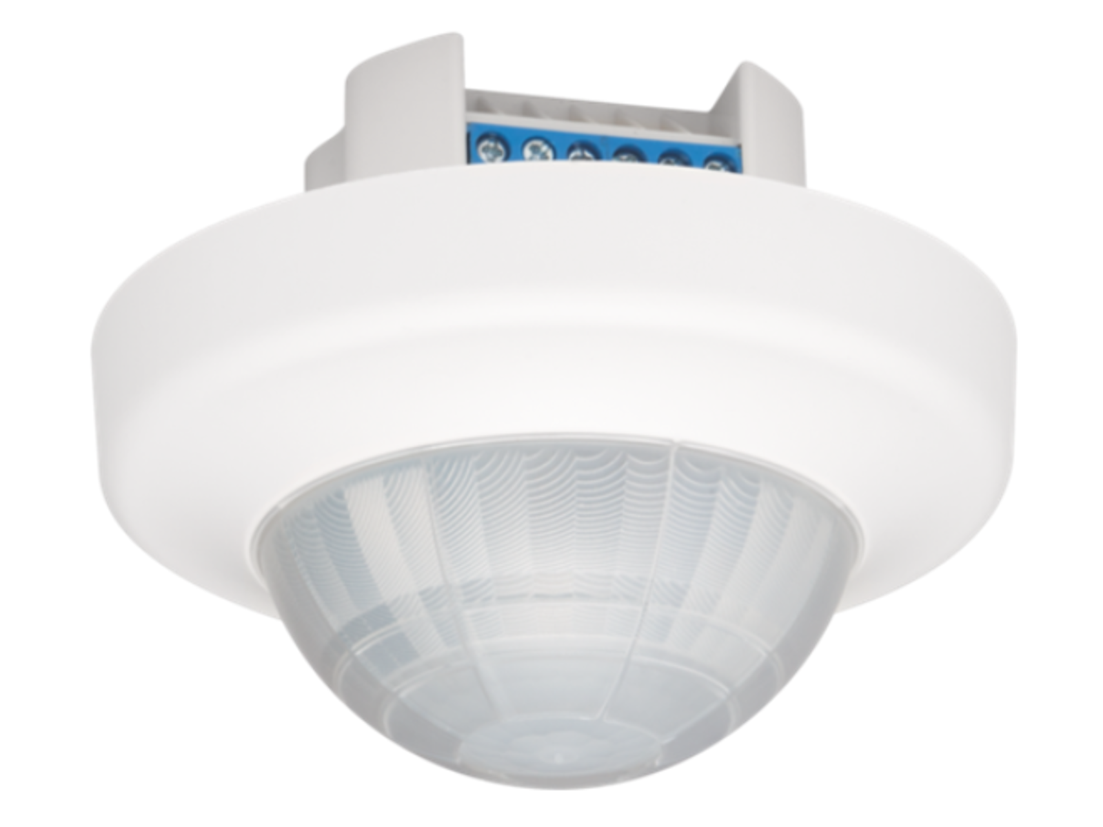 For øget fleksibilitet kan detekteringsområdet opdeles ved hjælp af en justerbar blænde, så sensoren kan bruges i zoner eller tilpassede områder. Den forsænkede montering giver en diskret integration i loftet, mens IP54-beskyttelsen gør den robust mod støv og fugt.
