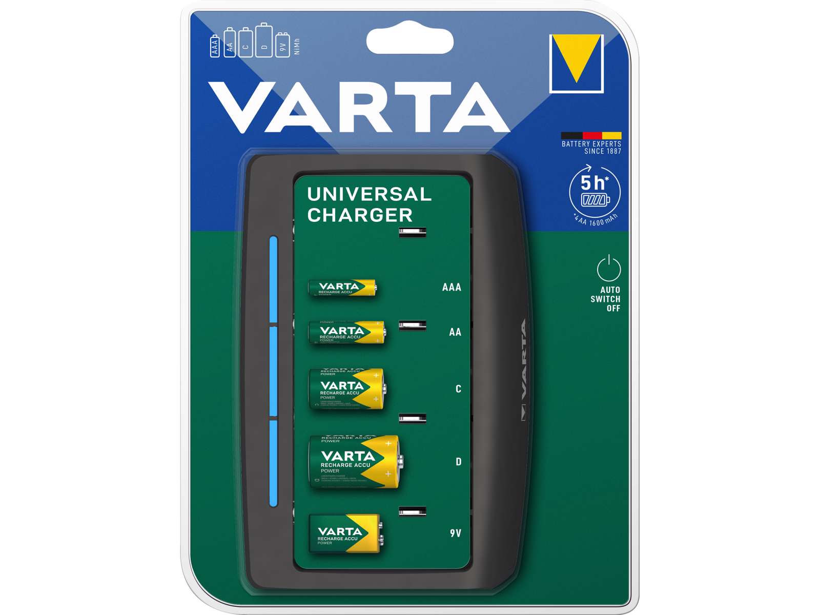 • 1× Varta Universal Batterioplader