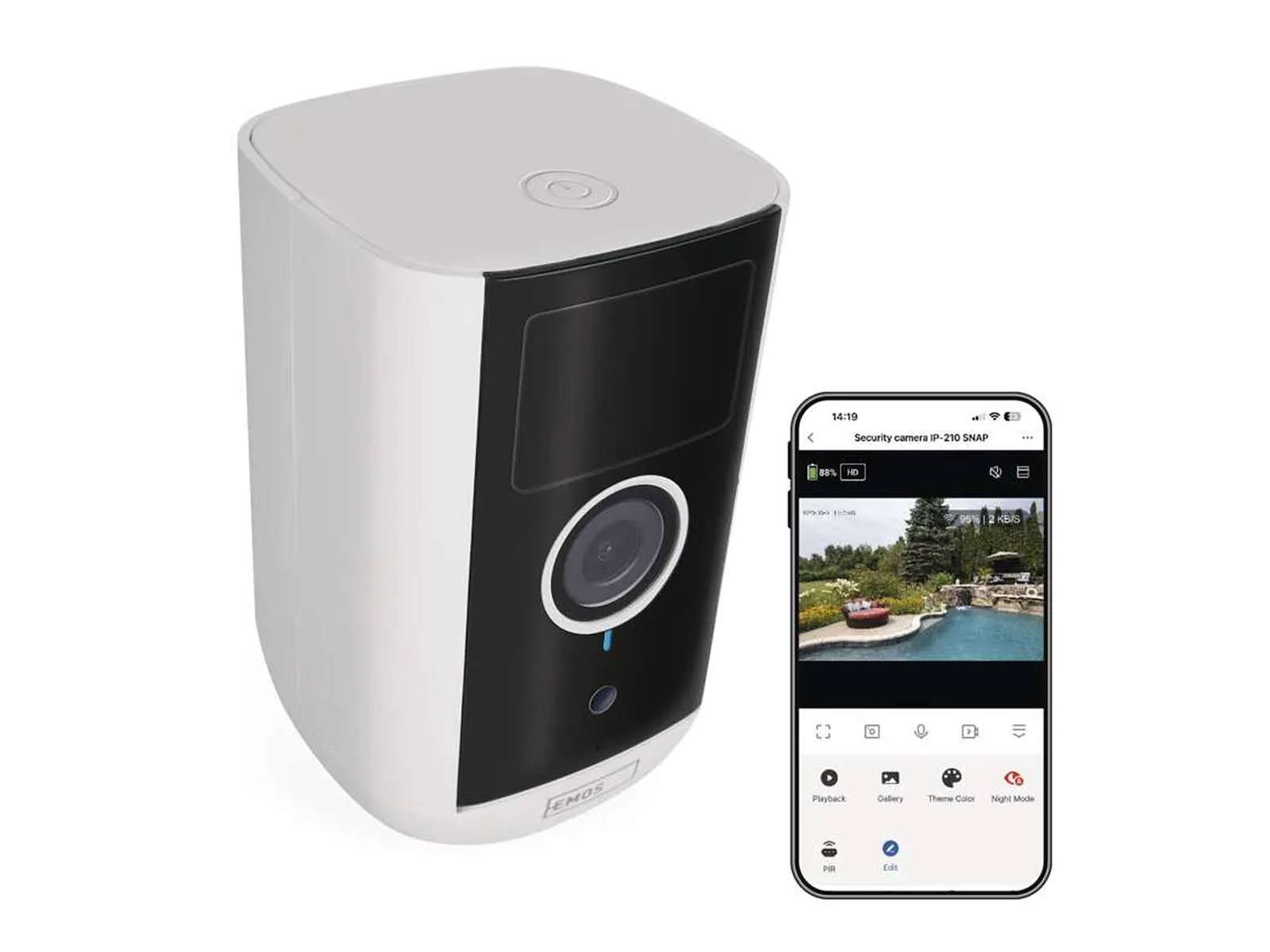 EMOS GoSmart IP-210 SNAP er et fleksibelt og batteridrevet IP kamera, der gør det nemt at overvåge hjem, have eller erhverv – både inde og ude. Kameraet tilsluttes via WiFi og styres direkte fra din smartphone.