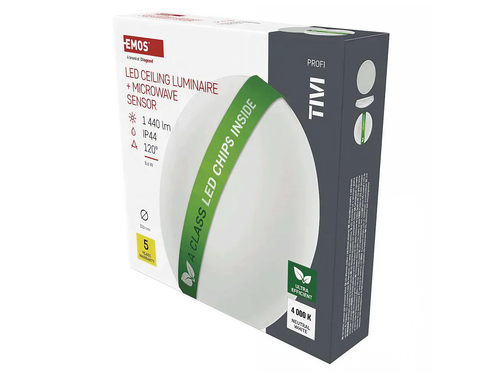 EMOS TIVI er udstyret med integreret mikrobølge-bevægelsessensor (MW) med en rækkevidde på op til 10 meter, hvilket gør den ideel til gangarealer, trapper, kældre, badeværelser, bryggers og udendørs overdækninger. Lyset tænder automatisk ved bevægelse og slukker igen, når området forlades.