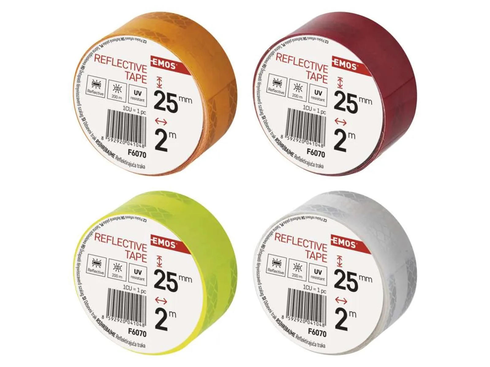 Reflex tapen leveres i et mix af farver – sølv, gul, orange og rød – så du kan vælge den løsning, der passer bedst til formålet.
