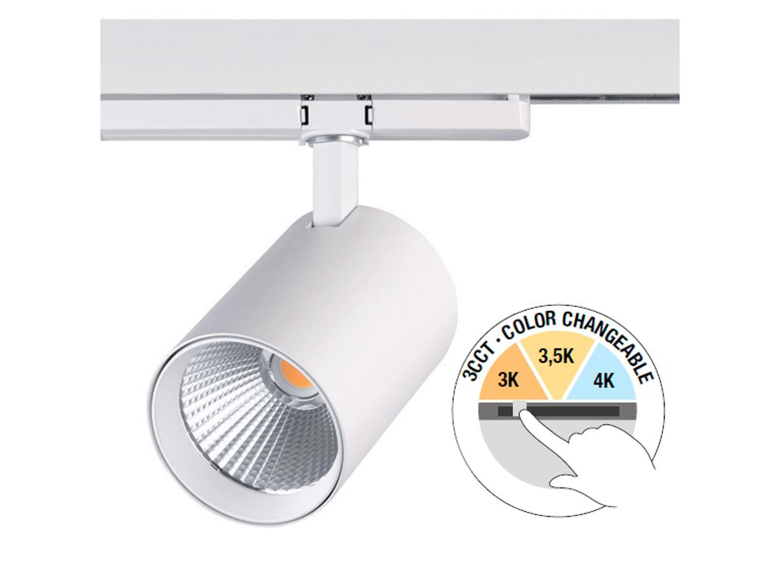 Relco Lighting 3-faset LED-skinnespot Regina 3 CCT U-BOOT 40W – professionel justerbar skinnespot med 3 farvetemperaturer