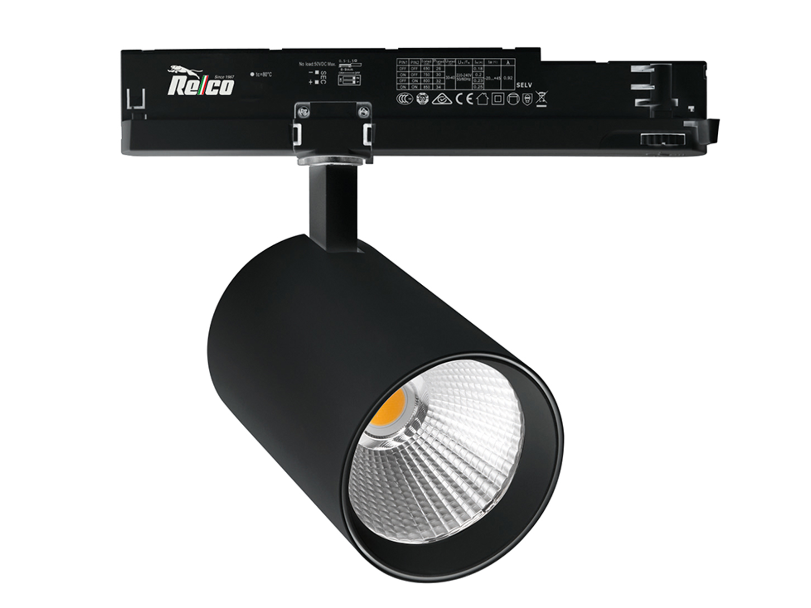 Relco Lighting 3-faset LED-skinnespot Regina RA90 19–40W 3/35/4000K – Sort