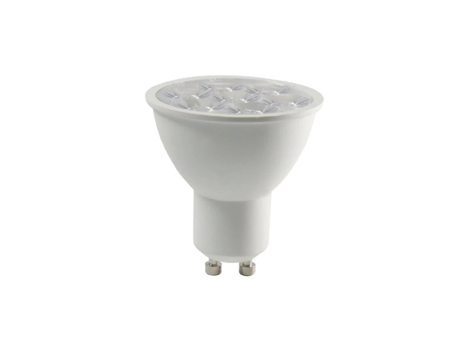 Denne LED-pære med GU10-fatning (6W) giver et neutralt hvidt lys (4000K) og erstatter en 60W glødepære. Den er ideel til fokuseret belysning i spotlamper og har en levetid på op til 15.000 timer.
