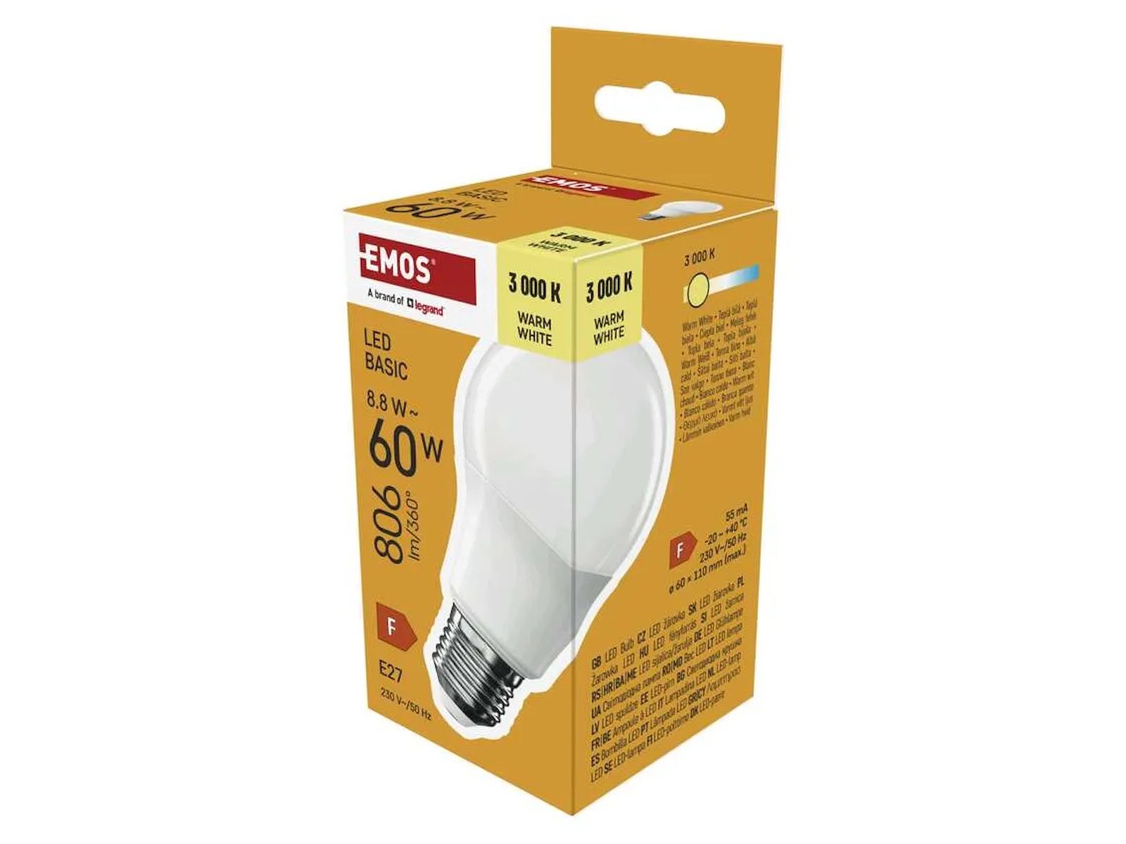Denne EMOS LED-pære giver et behageligt varmt hvidt lys (3.000K) og er et energieffektivt alternativ til traditionelle 60W glødepærer. Med en lysstyrke på 806 lumen sikrer pæren et kraftigt og ensartet lys med en bred spredningsvinkel på 200°, perfekt til hjemmet, kontoret eller andre indendørs miljøer.