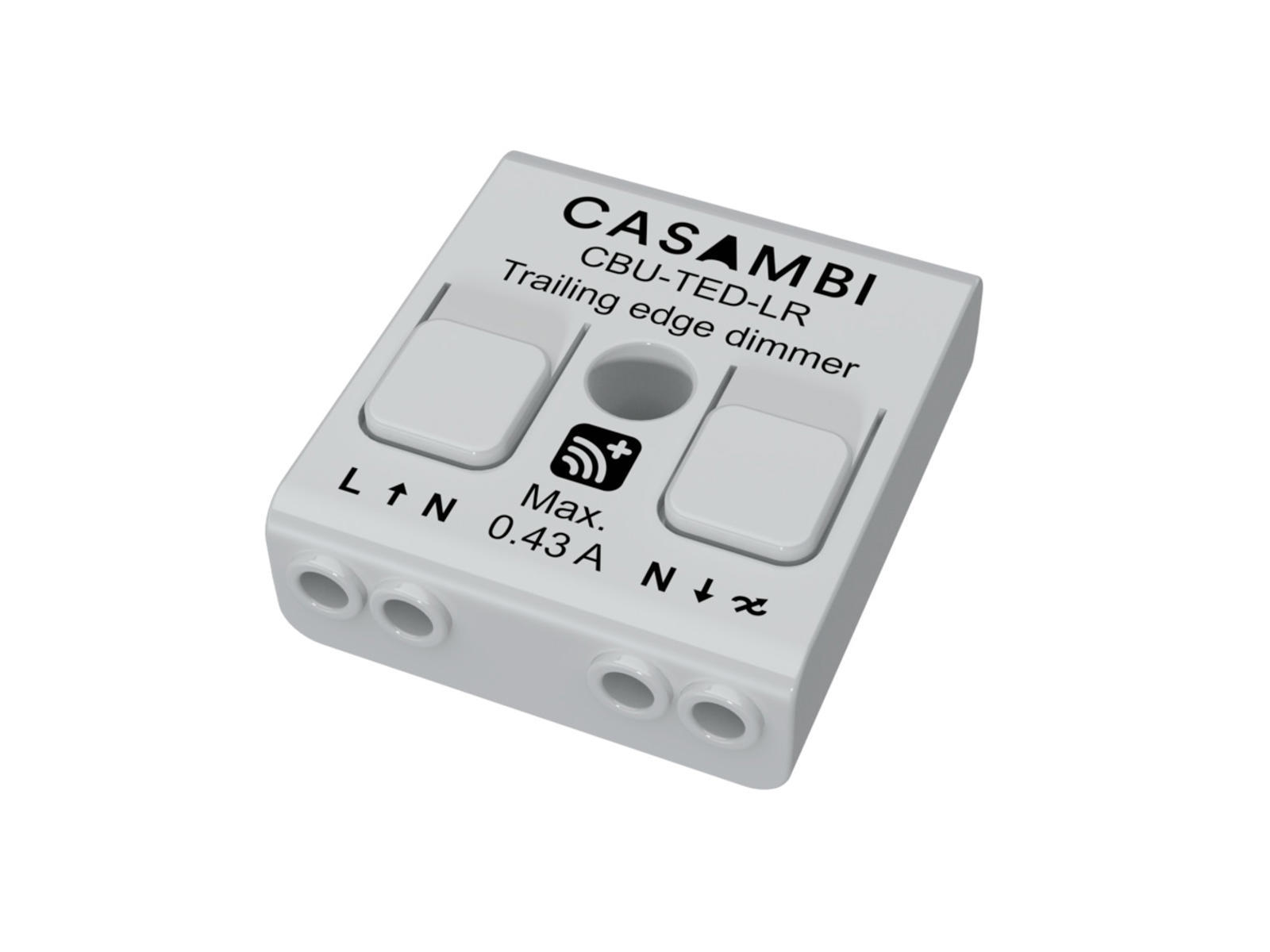 Casambi CBU-TED-LR er en Bluetooth-styret trailing-edge dæmper med lang rækkevidde, udviklet til dæmpbare LED-pærer, dæmpbare LED-drivere samt gløde- og halogenlamper. Enheden gør det nemt at integrere kompatible lyskilder i et Casambi mesh-netværk og skabe intelligent, trådløs lysstyring uden behov for gateway eller ekstra styreenheder.