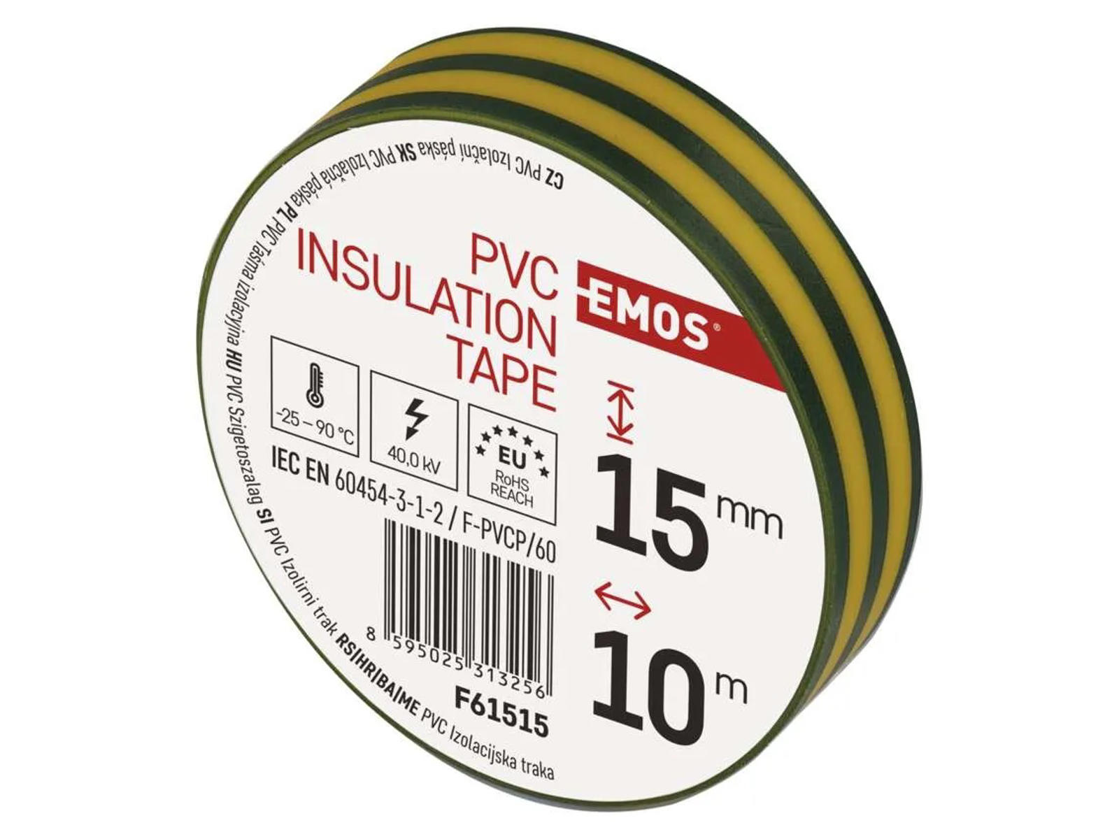 EMOS Isoleringstape PVC 15mm x 10m – Grøn/Gul