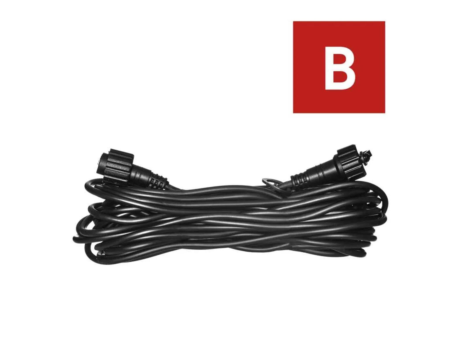 Dette sorte forlængerkabel på 10 meter er designet til at forbinde dine Profi-lyskæder på en enkel og sikker måde. Kablet giver dig fleksibilitet til at dekorere større områder, hvad enten det er til julebelysning, hyggelig udendørsbelysning eller professionel dekoration.
