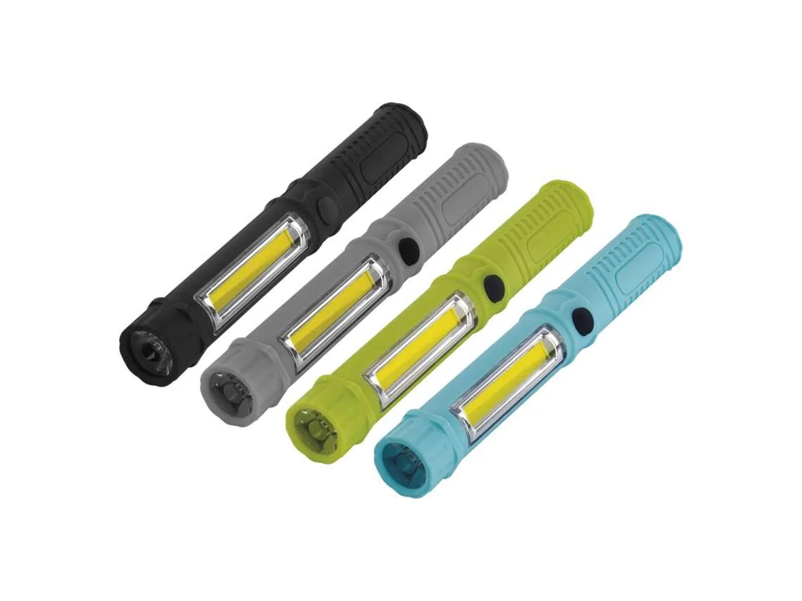 Kompakt LED-lommelygte med clip og magnet, batteridrevet med 3x AAA. Slagfast og praktisk til husstand, værksted og arbejdsplads.